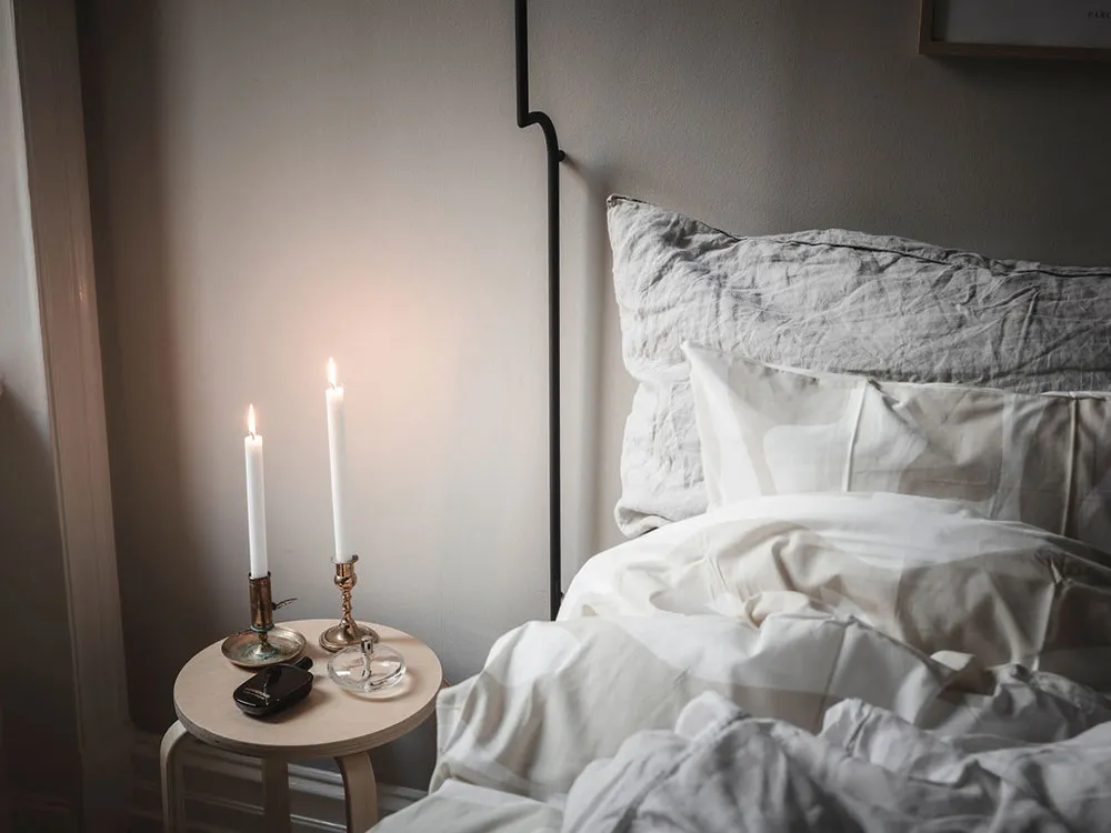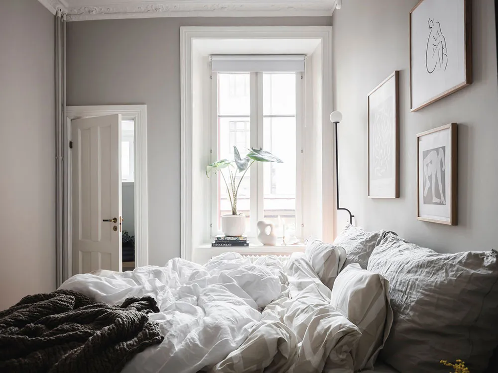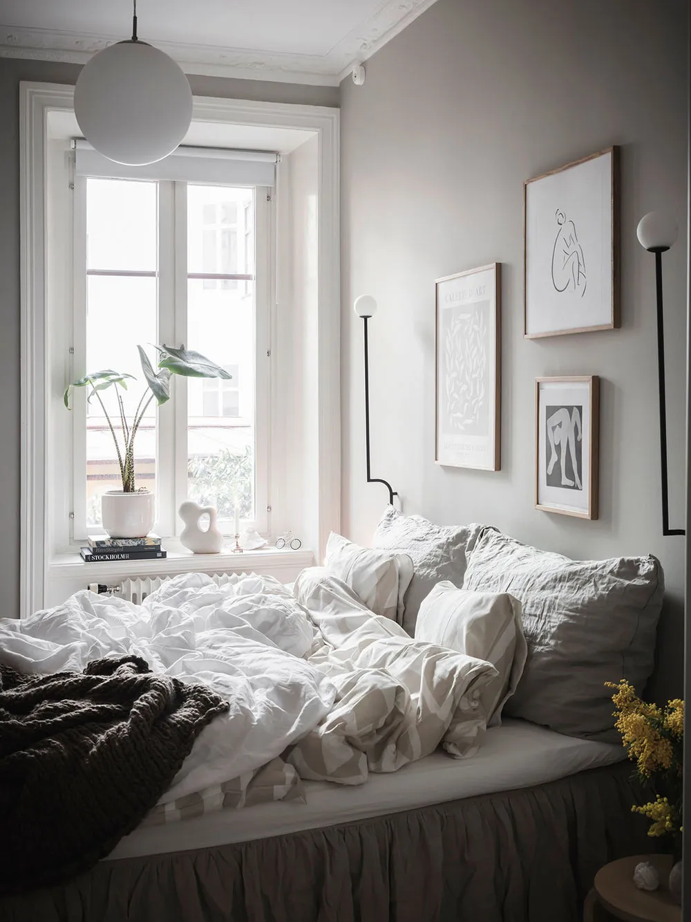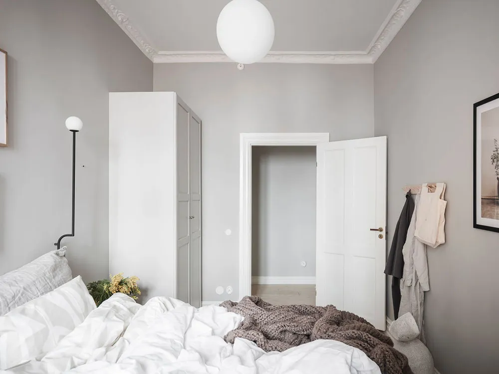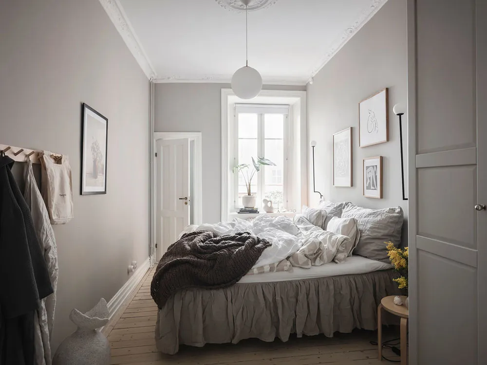 ダークな色調とニッチな空間を活かしたベッドルーム――スウェーデンの小さなアパート(37平方メートル)