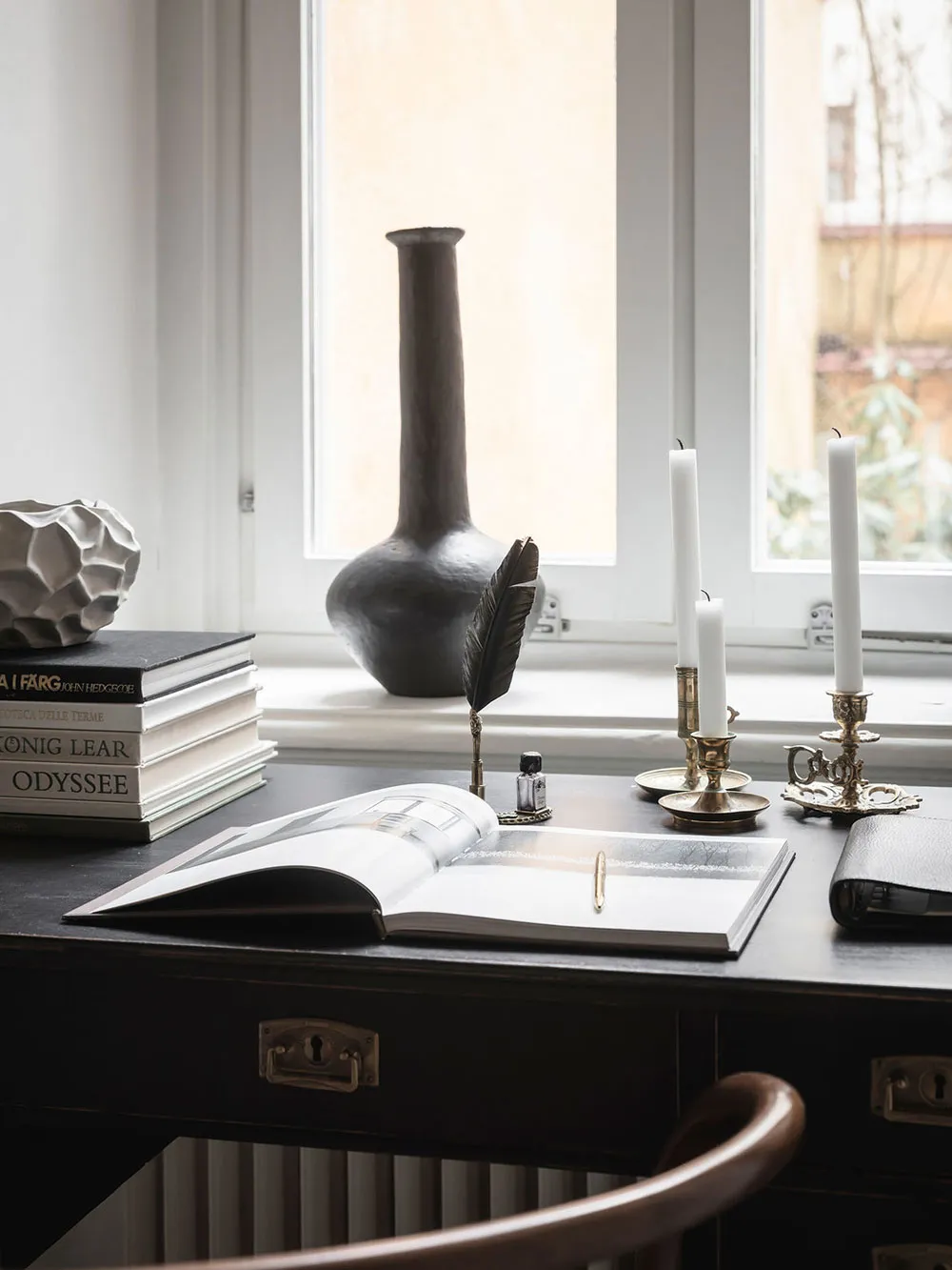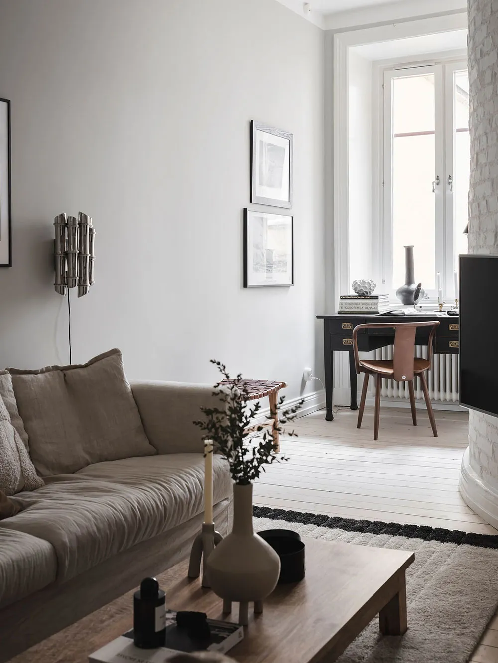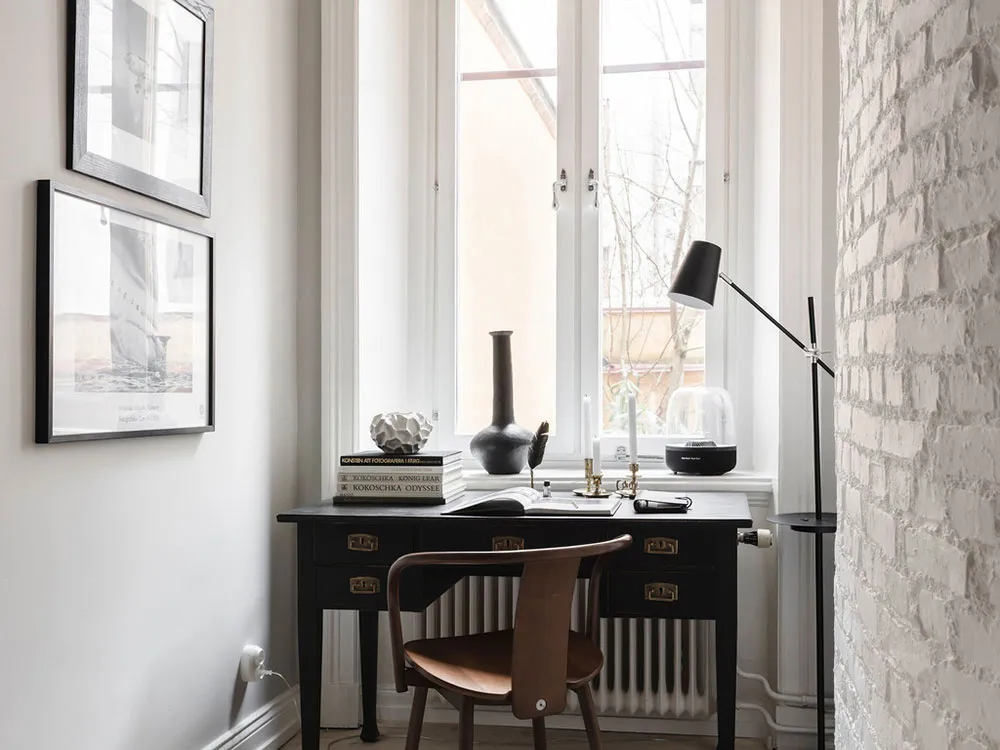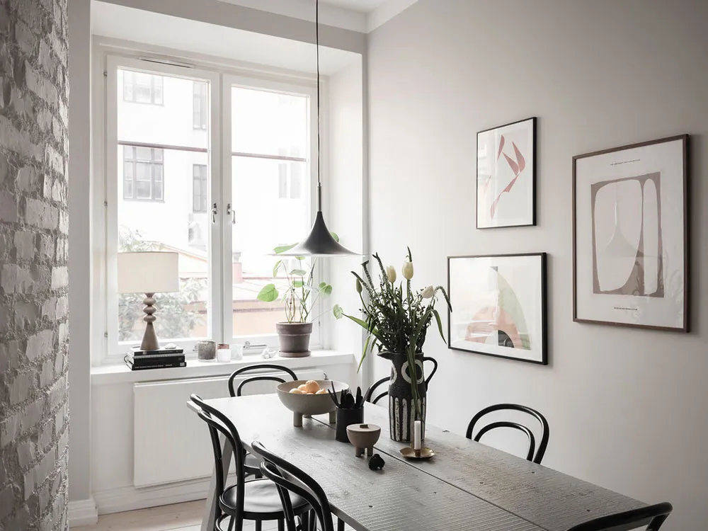 ストックホルムにある、クリエイティブな雰囲気の明るいアパートメント