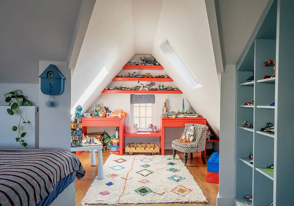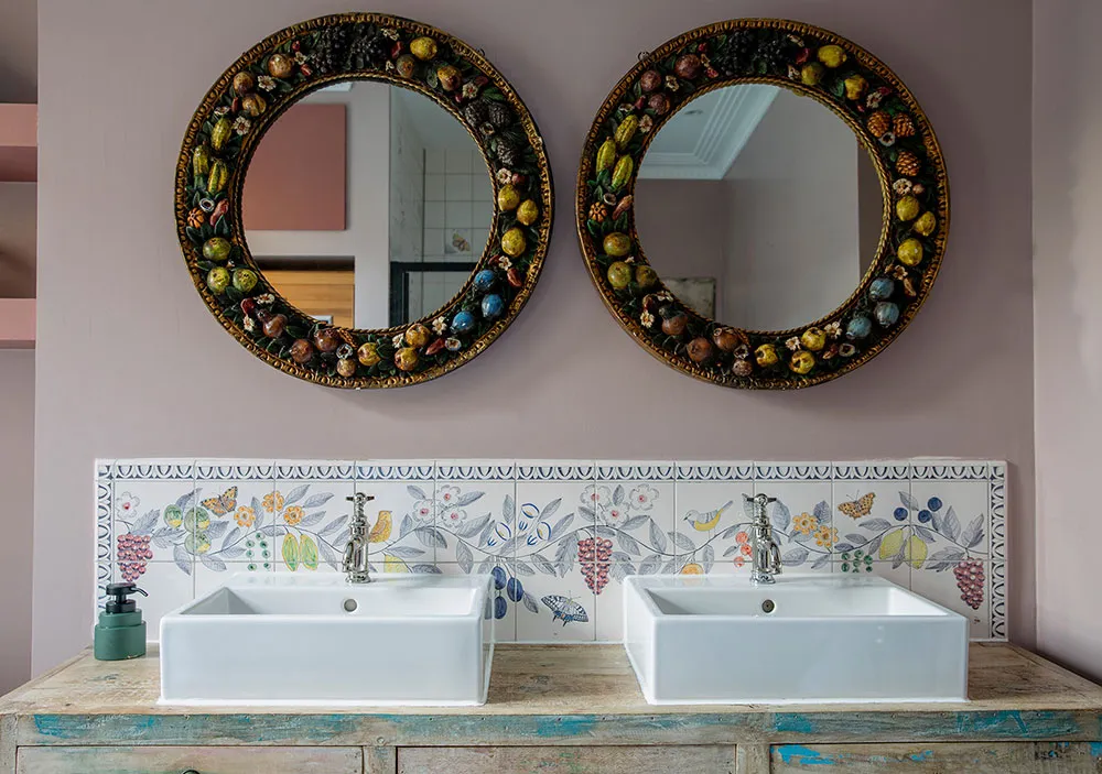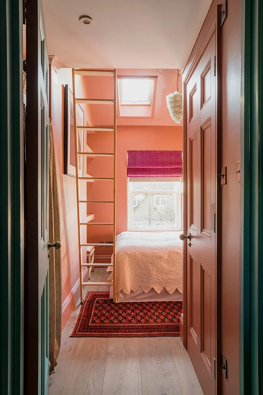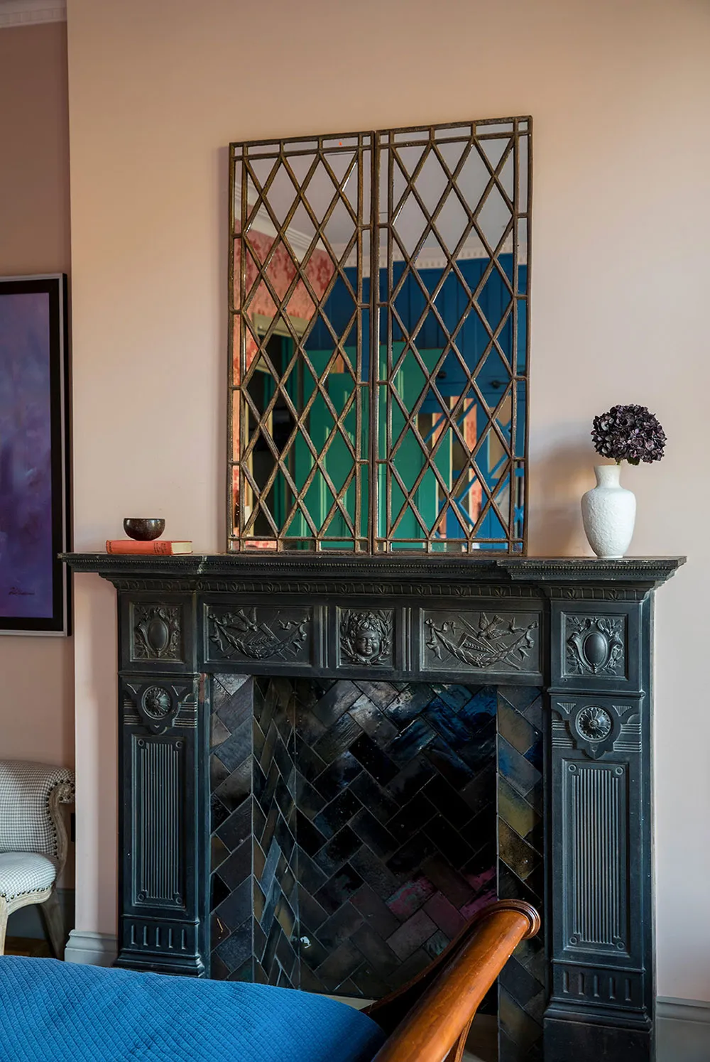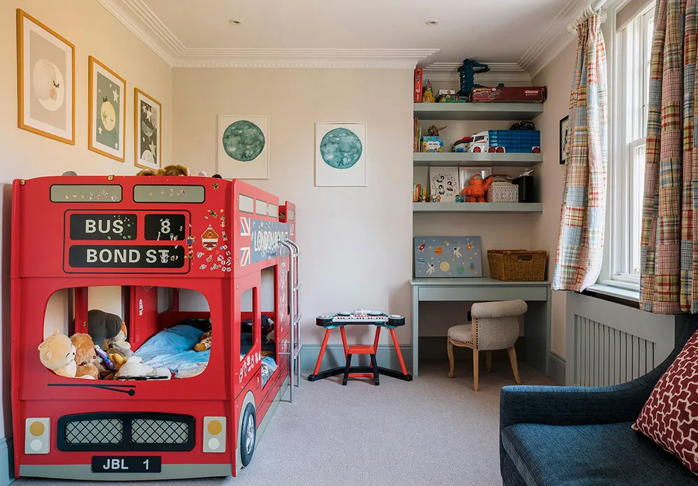 ロンドンにあるタウンハウスの内装は、色彩が豊かなだけでなく、デザイナーたちが慎重に選んだユニークで時には驚きを与える色合いが使われています。