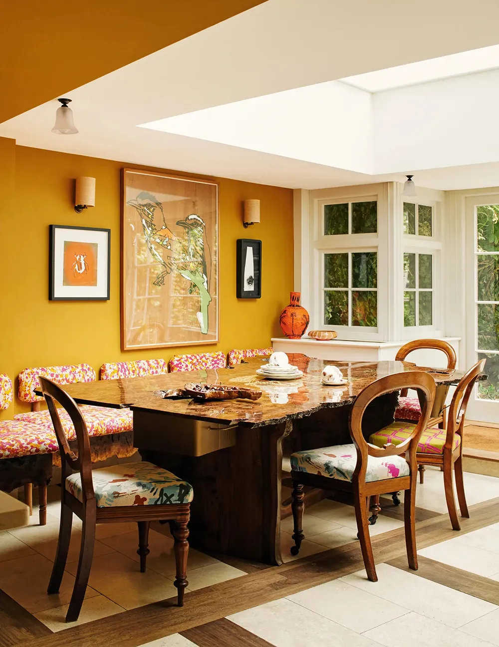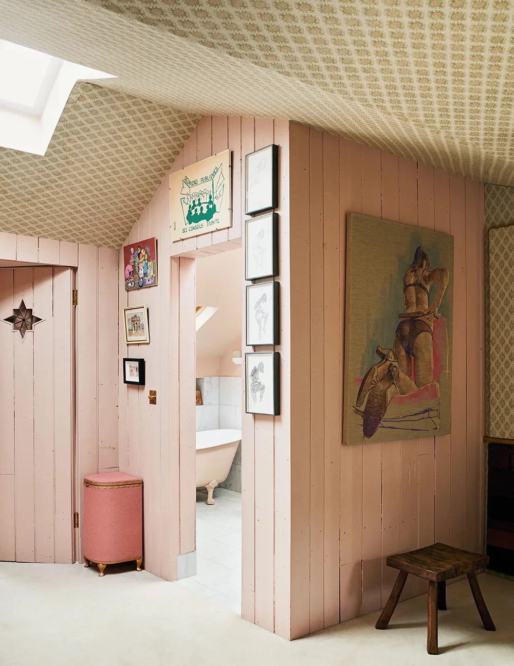 このロンドンの家は、モダンアートや斬新な大胆な色使いで、非常に創造的な雰囲気に満ちています。