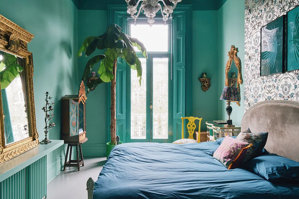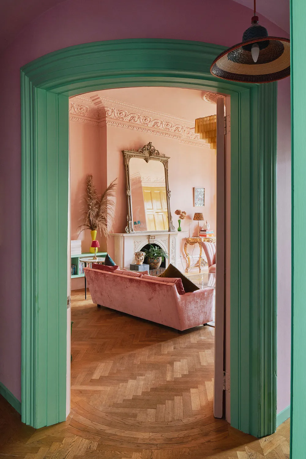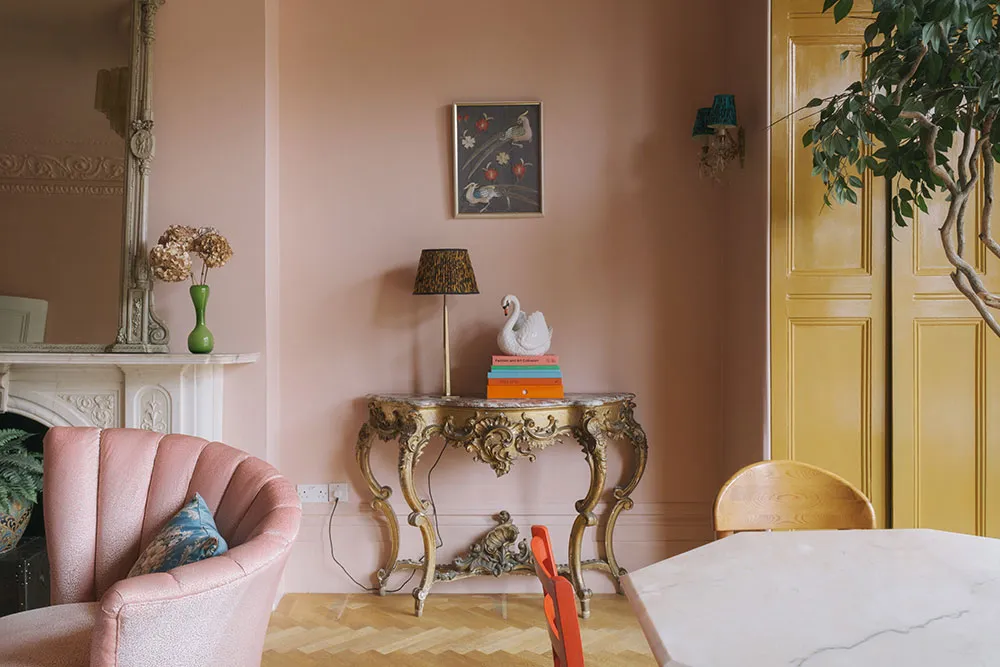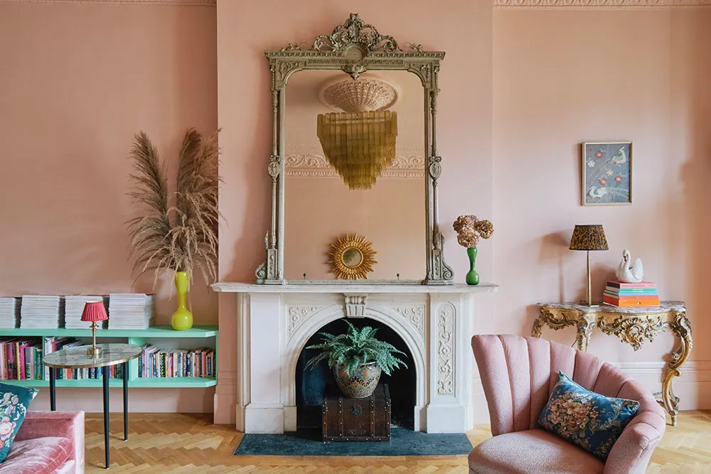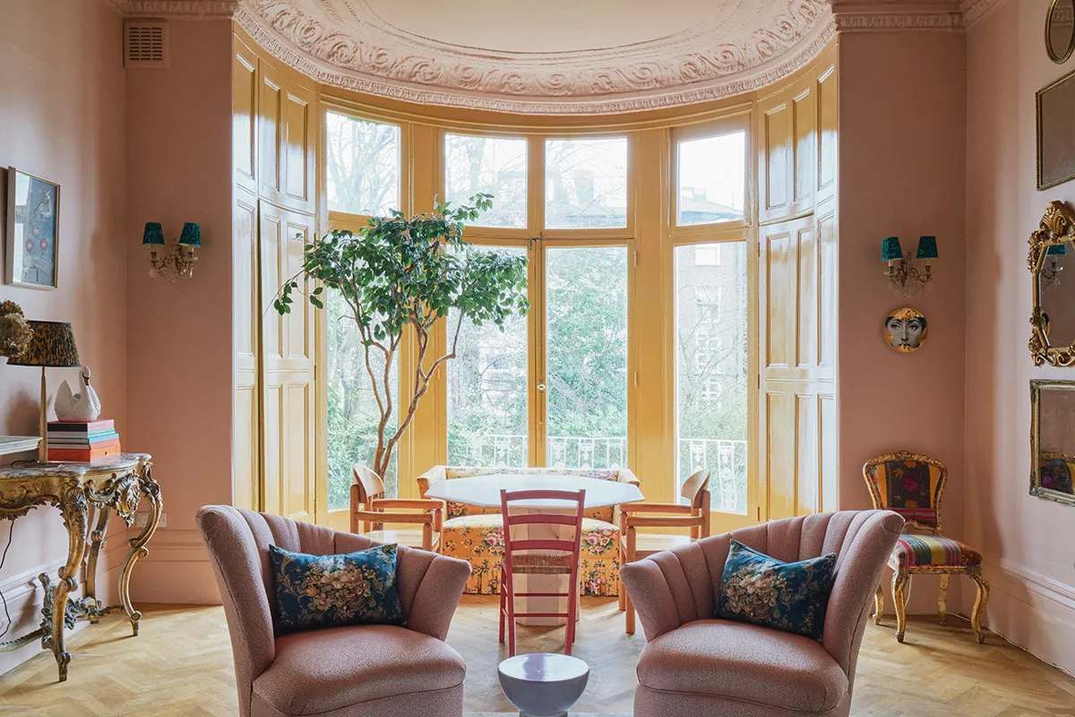 おそらく、このロンドンのタウンハウスの内装には、パステルカラーパレットから選ばれたどんな色も使われていないだろう。