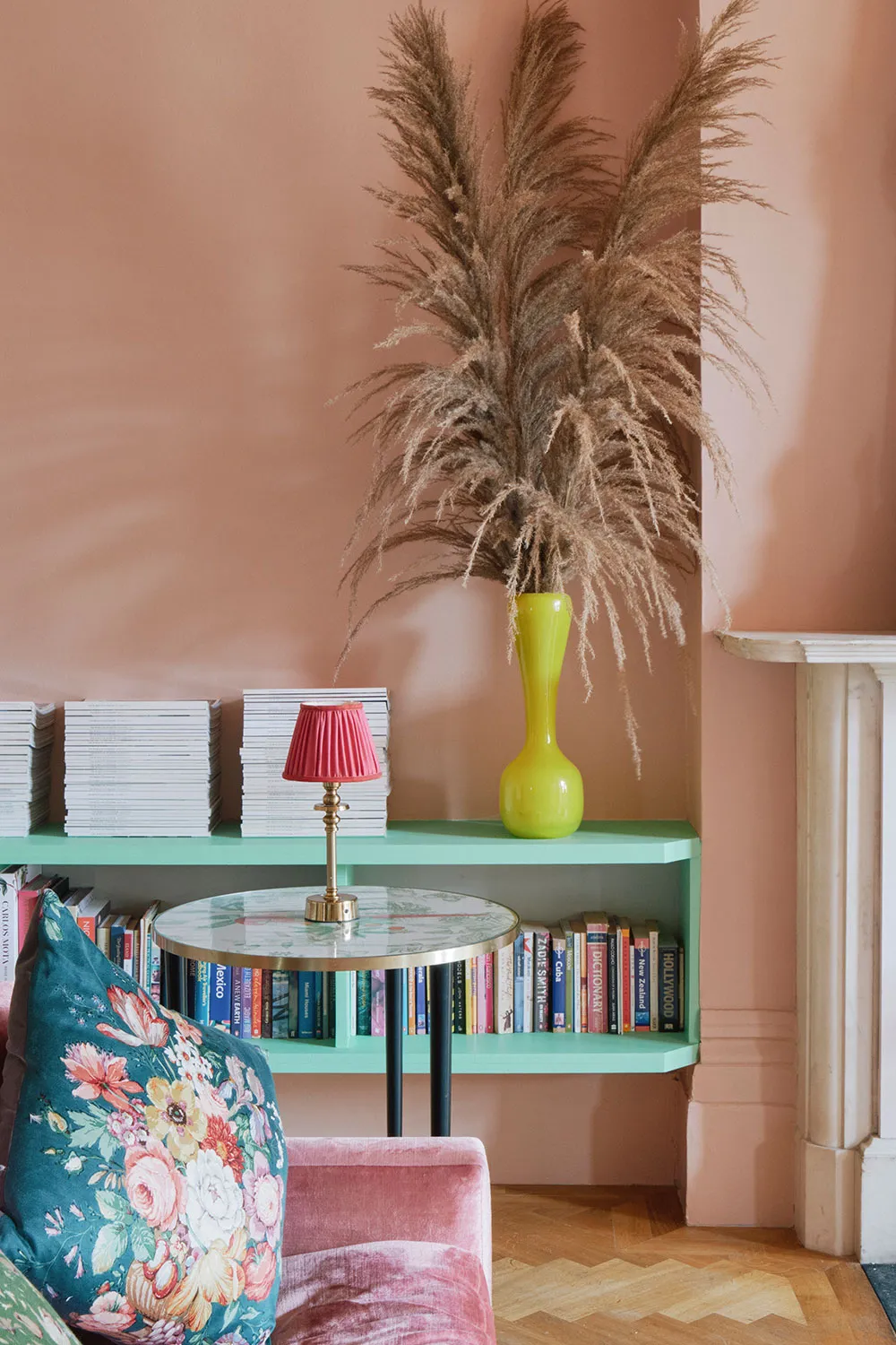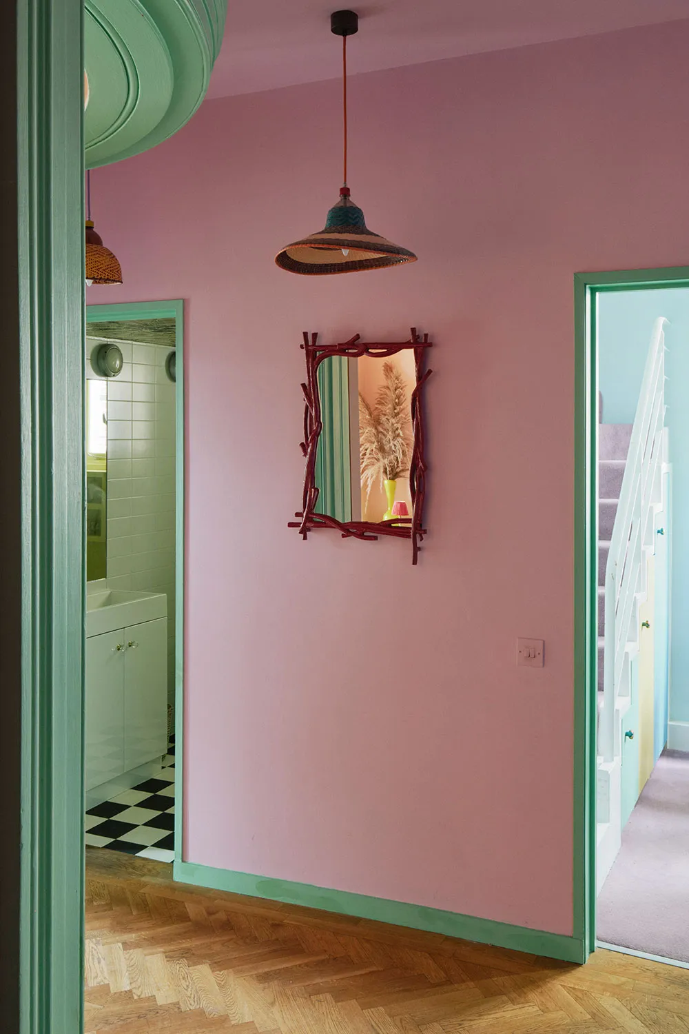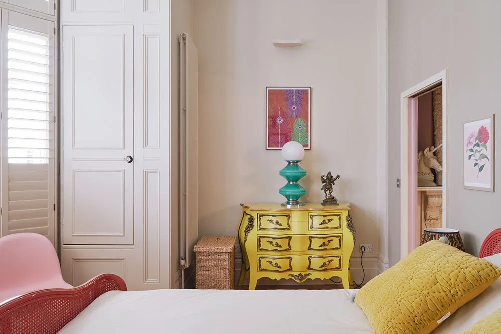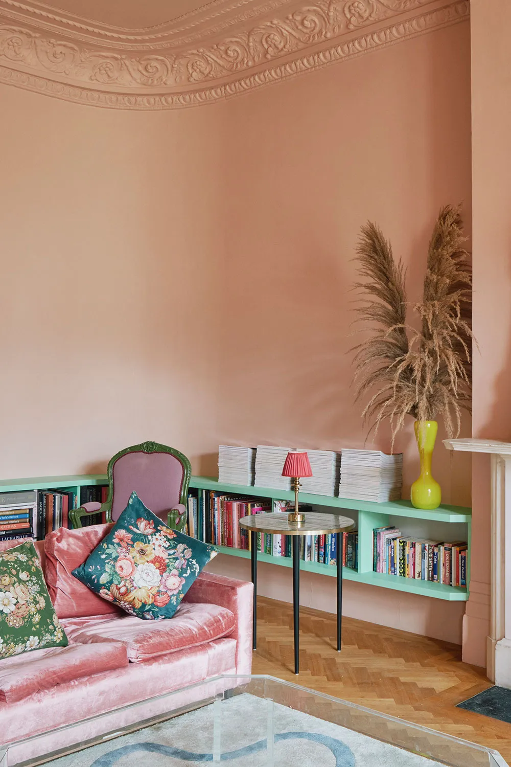 おそらく、このロンドンのタウンハウスの内装には、パステルカラーパレットから選ばれたどんな色も使われていないだろう。