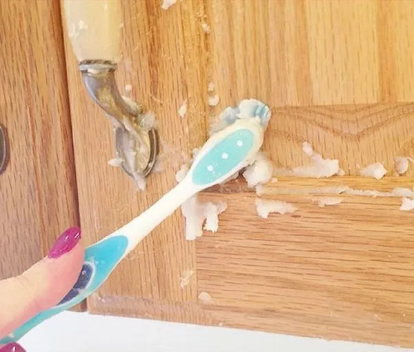 Dla czyszczenia trudnodostępnych miejsc – różnych zakątków, wgnieczeń, szczelin w sanitarnych urządzeniach, pojemnościach i urządzeniach domowych – użyj starego szczoteczki do zębów. Środek czyszczący może być zastąpiony równie skutecznym roztworem mydlanym.