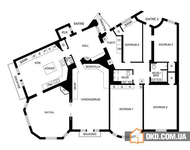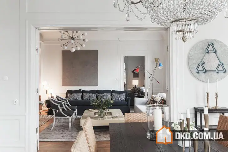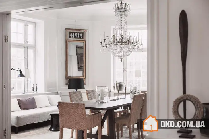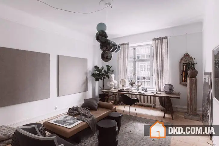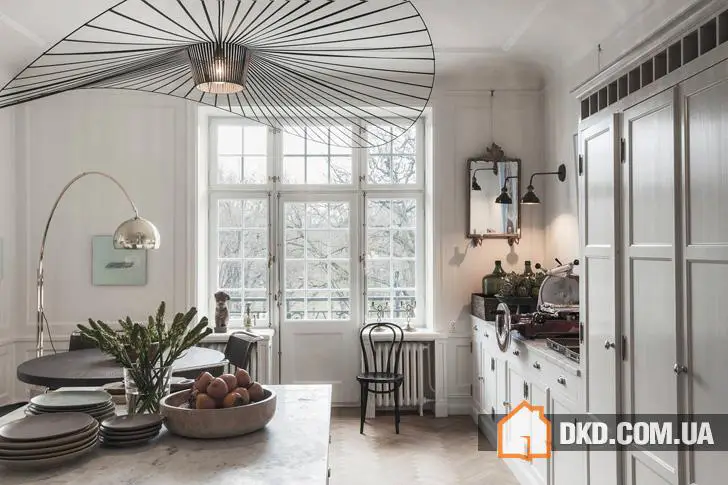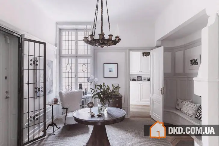 To przestronne mieszkanie w starożytnym budynku w Sztokholmie to niczym miejski pałac jakiejś szlachetnej rodziny: w posiadaniu właścicieli łączna powierzchnia 255 m², 6 pokoi, 3 balkony i dwa kominy! wnętrzacje wykonane w stylu pasującym do przestrzeni – w podstawie skandynawski minimalizm, ale wyraźne i oryginalne przedmioty i detale dodają szlachetności pomieszczeniom, w każdym pokoju znajduje się swoja „szczotka”. Warto tylko projektowe lampy, wietna drewniana meblowa i przykłady sztuki jako dekoracja. Wspaniale!