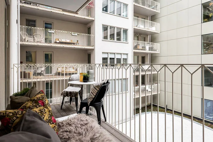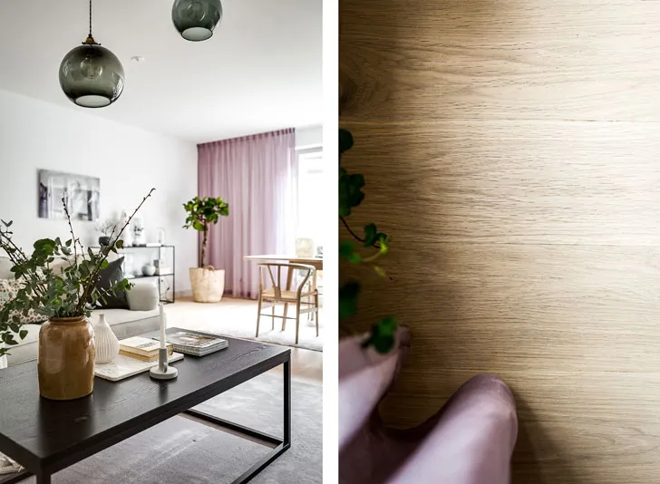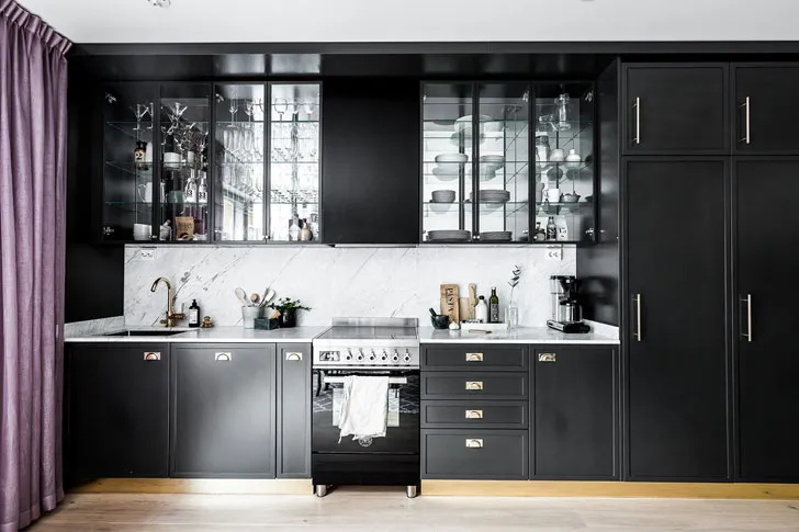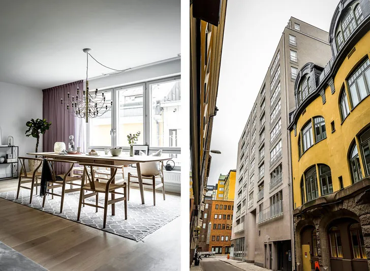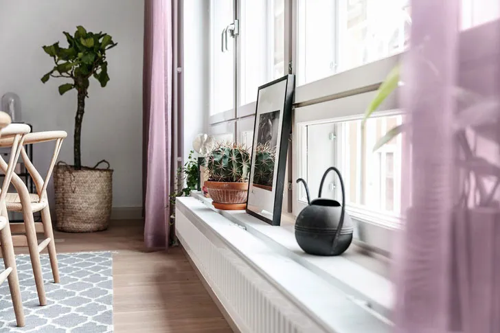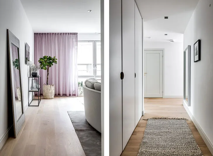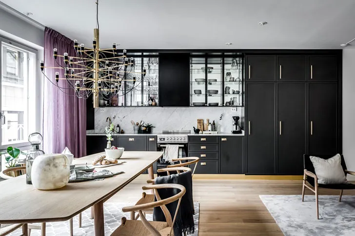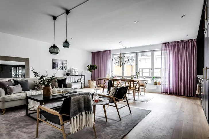 Nowoczesny интерьер z fioletowymi akcentami w Stokholmie (93 m²)
