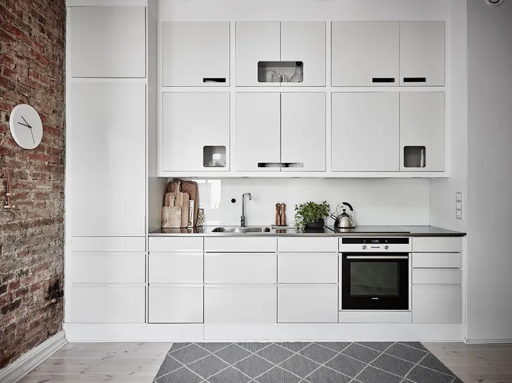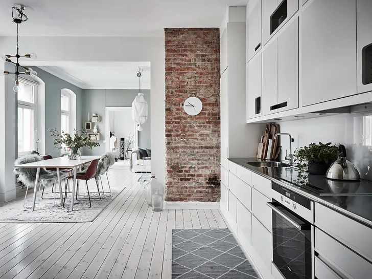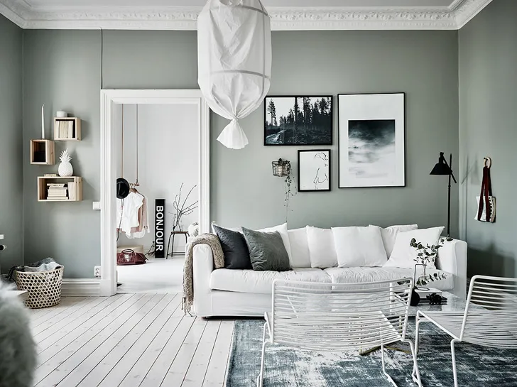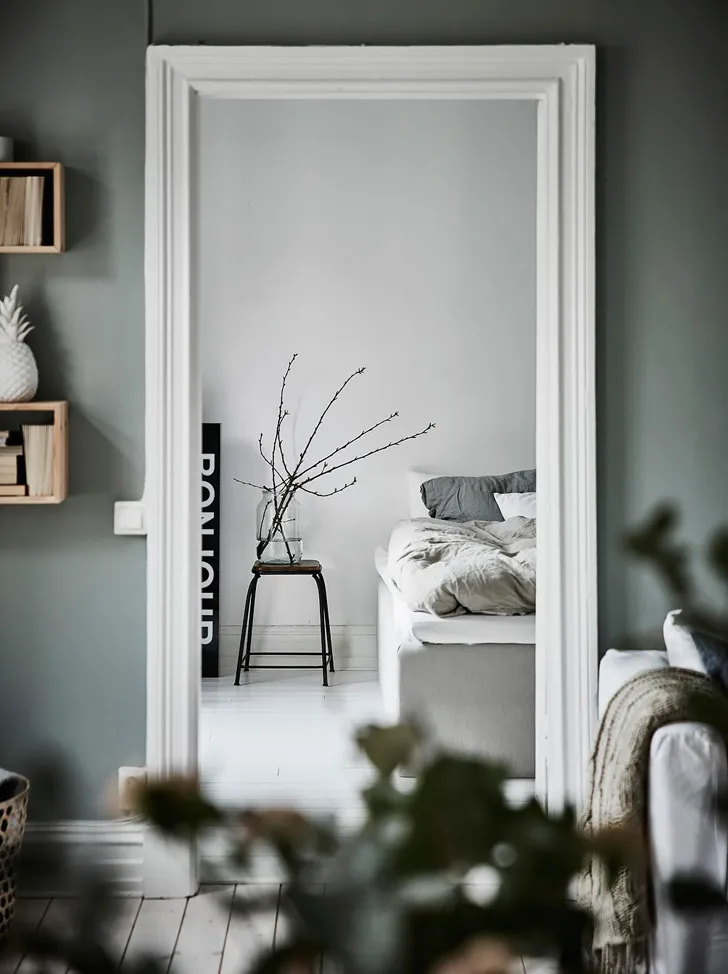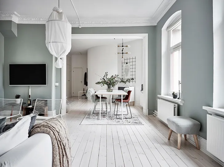 Ostatnio bardzo podoba nam się odcień szarego z odtonem zielonym, który, jak zauważyliśmy, stał się nowym modnym trendem. Tak, jest nieco chłodniejszy według definicji, ale zapewnia uczucie świeżości i przestrzeni, szczególnie razem z obfitym naturalnym światłem. Tak wygląda ta wspaniała dwu-pokojowa kwatera w Szwecji o powierzchni 56 m². Spójrz!