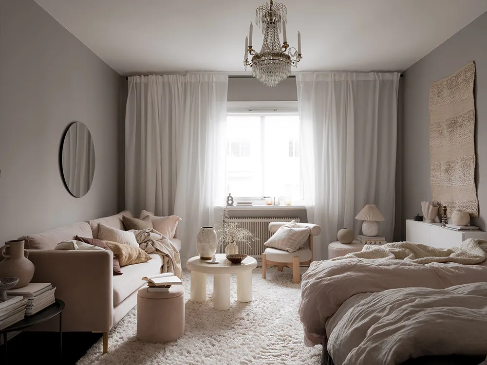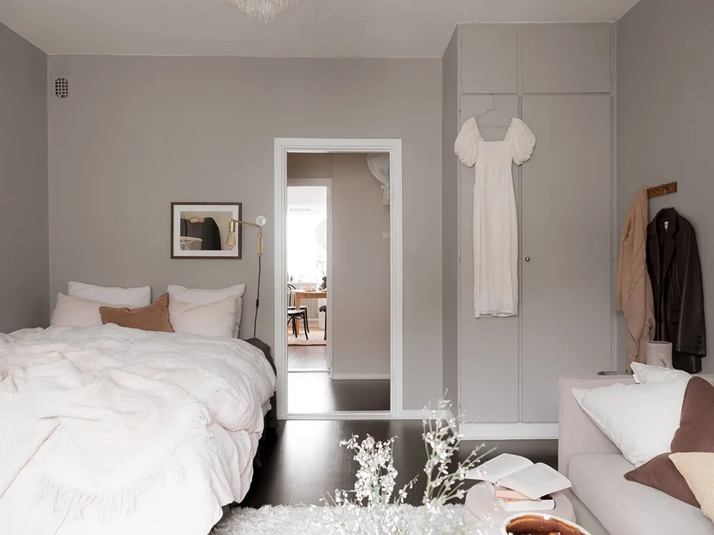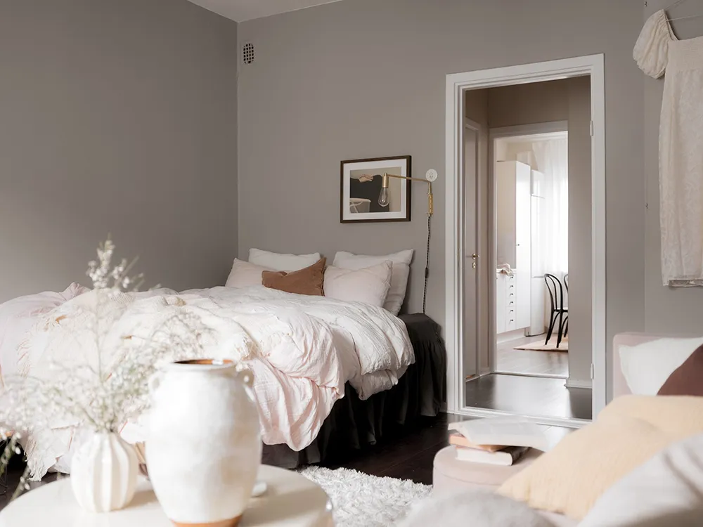 Miękty wnętrze kompaktowego 1-pokojowego mieszkania w Szwecji (38 m²)