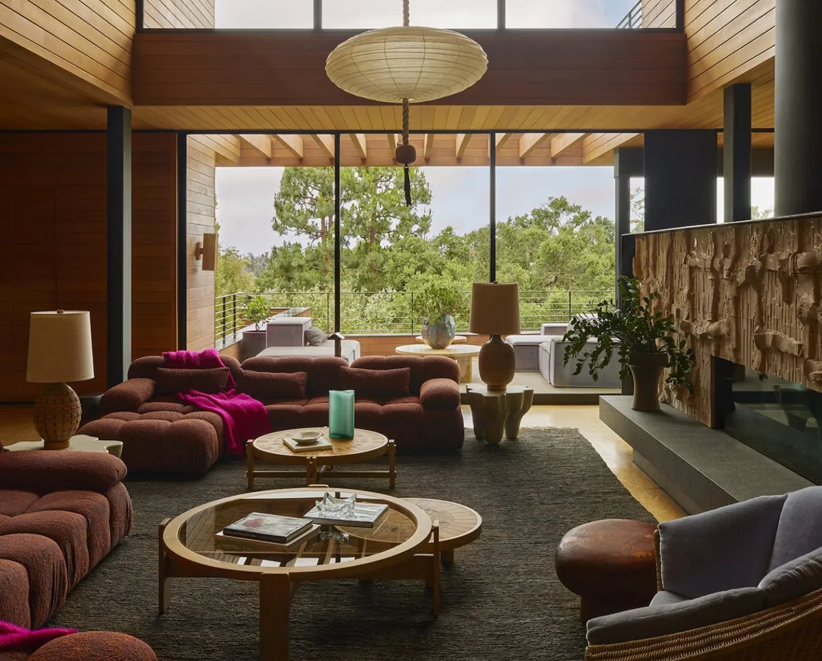 Eksotyczne drewno i eklektyszm: nowoczesna rezidencja w górach Kalifornii