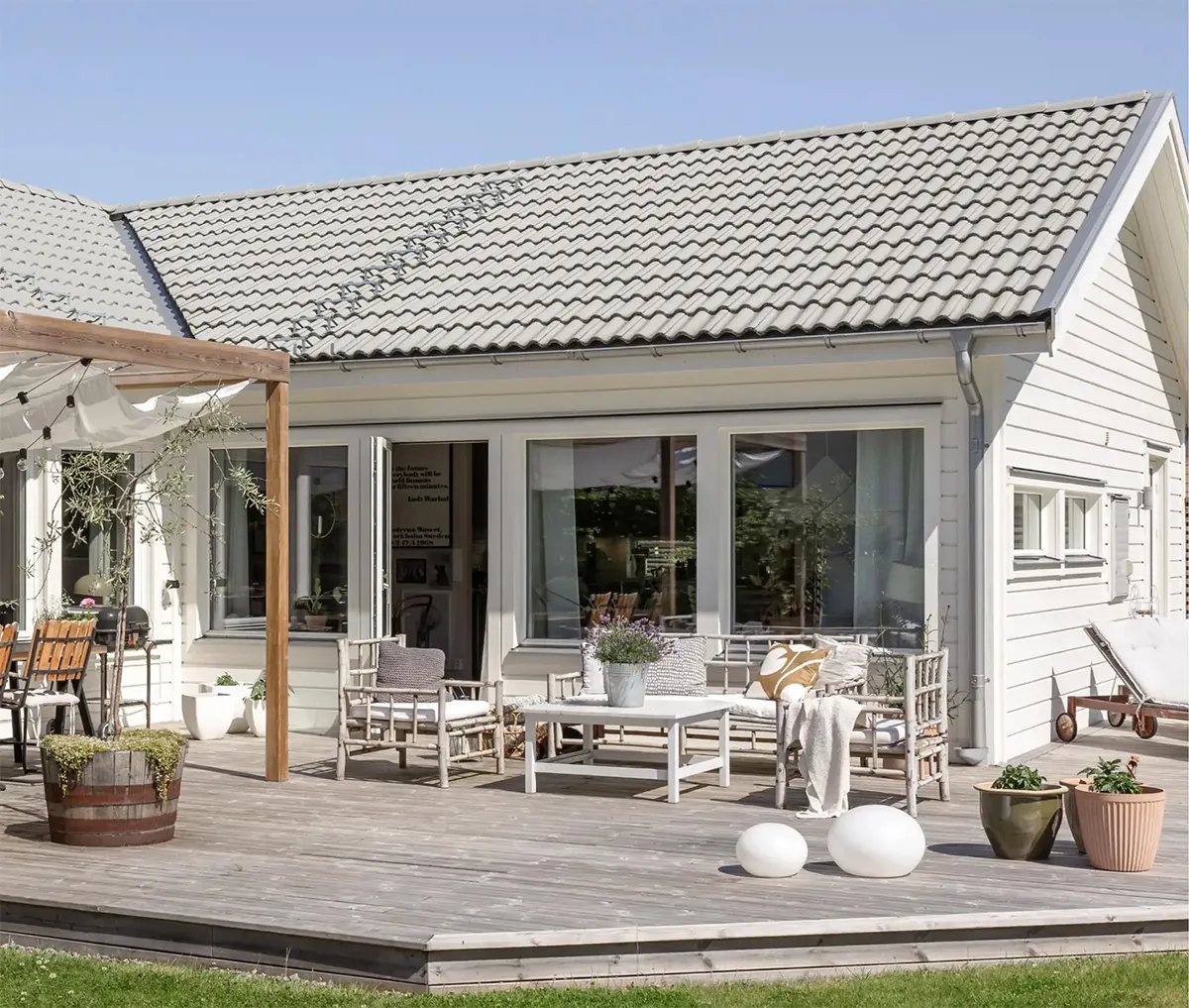 Mały nowoczesny domek na przedmieściach dla młodej rodziny w Szwecji