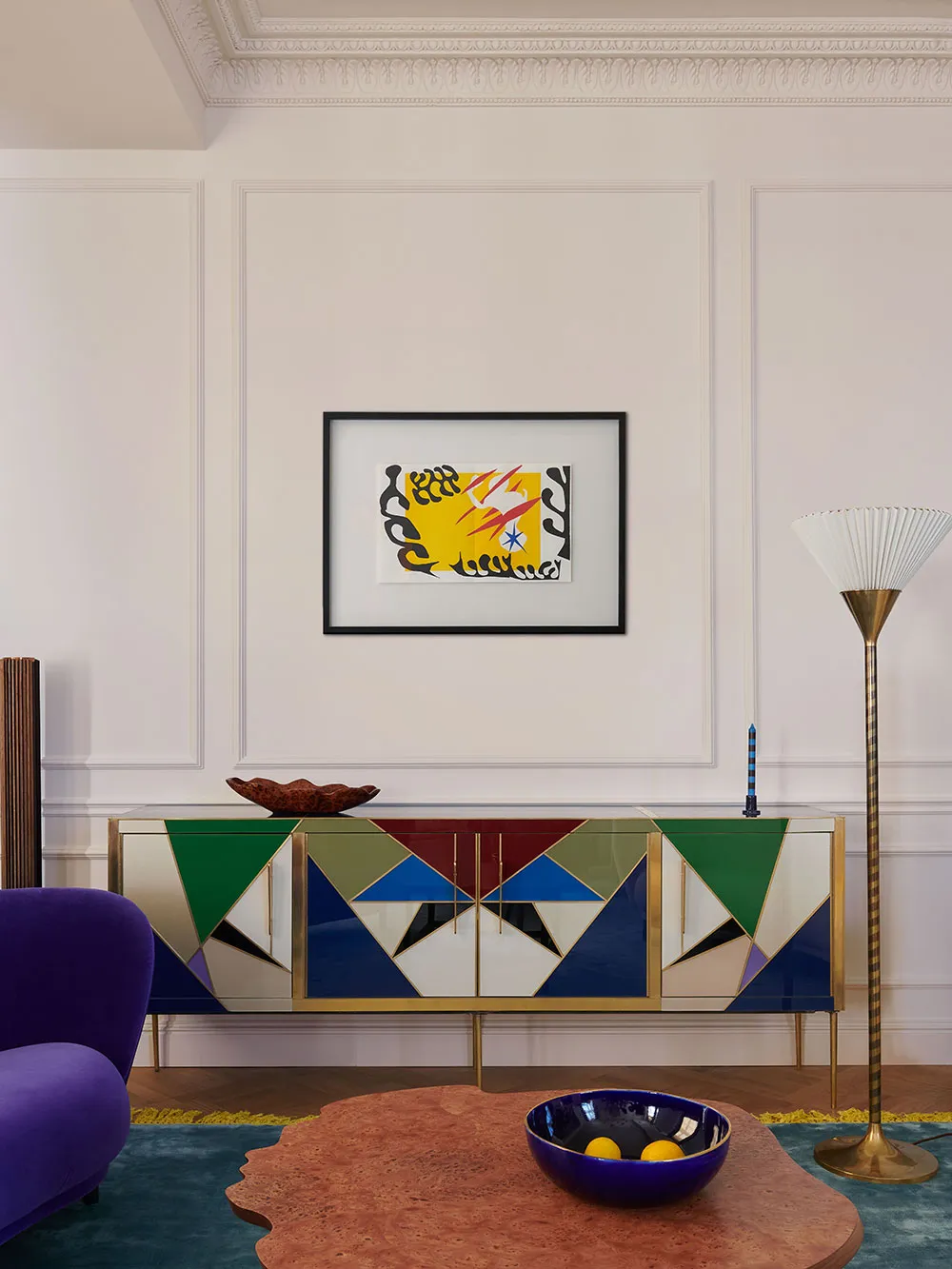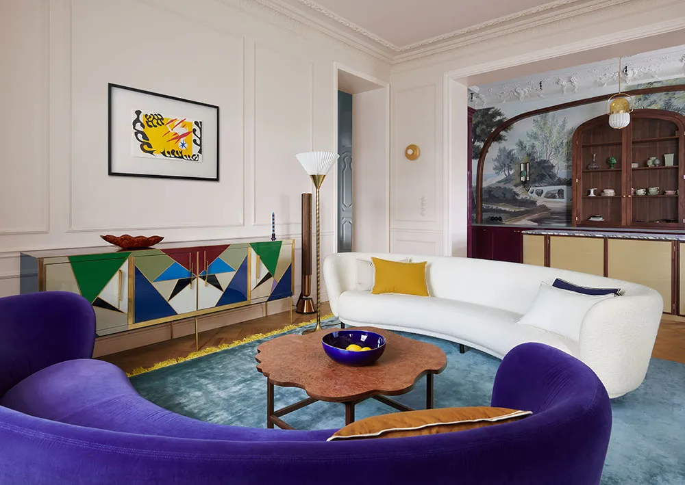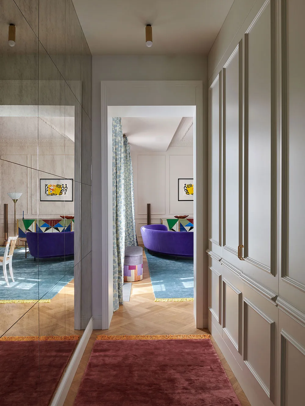 To jaskrawe mieszkanie w Warszawie wypełnione jest modnym parskim szarmem, a sprawą nie tylko w ściannej lepnie i klasycznym parkiecie.