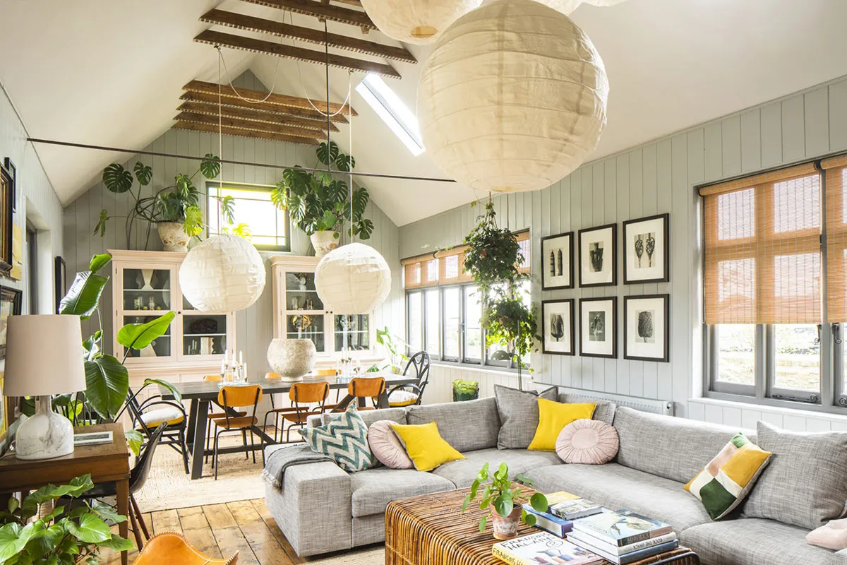 Piękny wiktoriański kottędż w Anglii z kolorowymi akcentami w wnętrzu