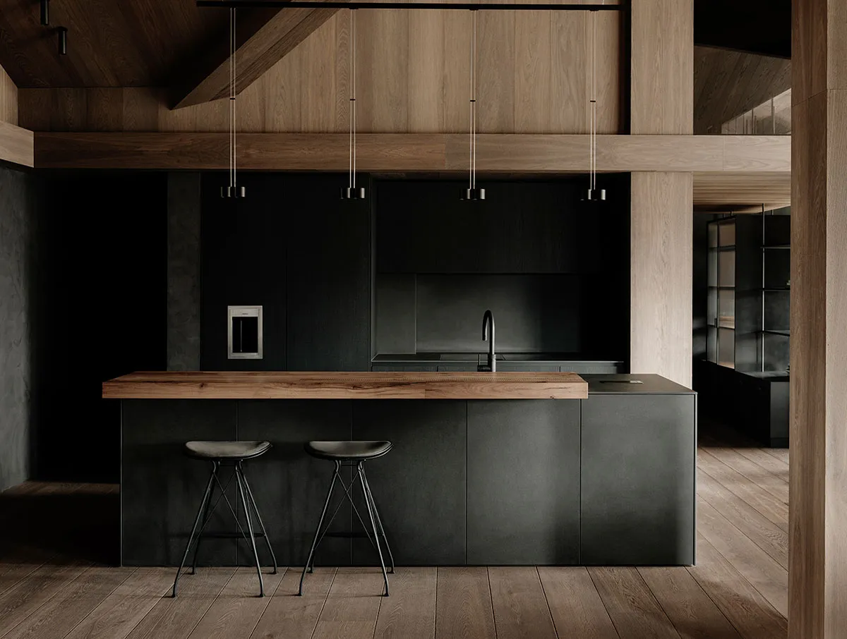 Czarny kolor, drewno i minimalizm – stylowy apartament w górach Norwegii