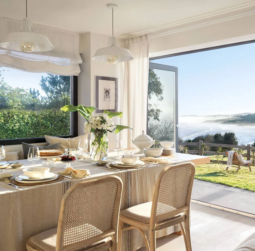 Białe wnętrza z niebieskimi akcentami i niesamowitymi widokami na morze w Hiszpanii