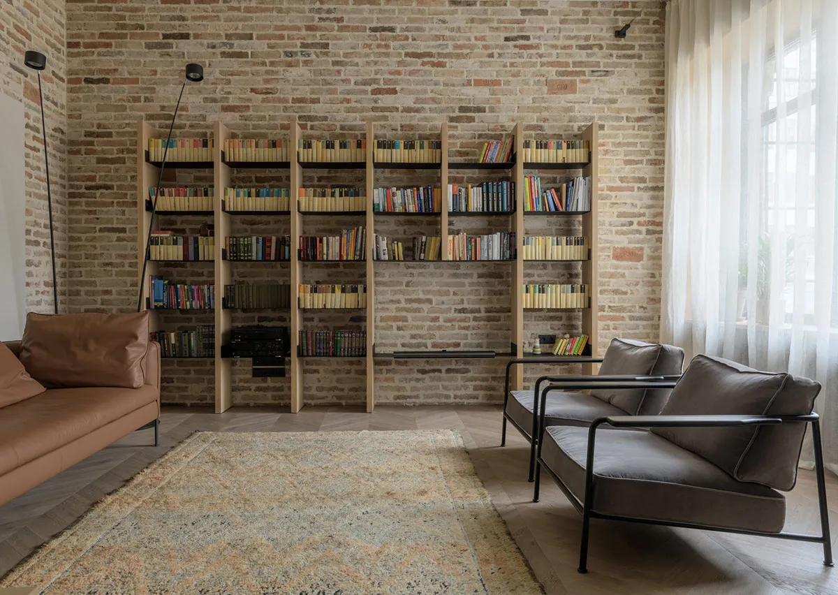 Ciepły minimalizm z ceglany ścianą dla młodej rodziny w Kijowie (95 m²)