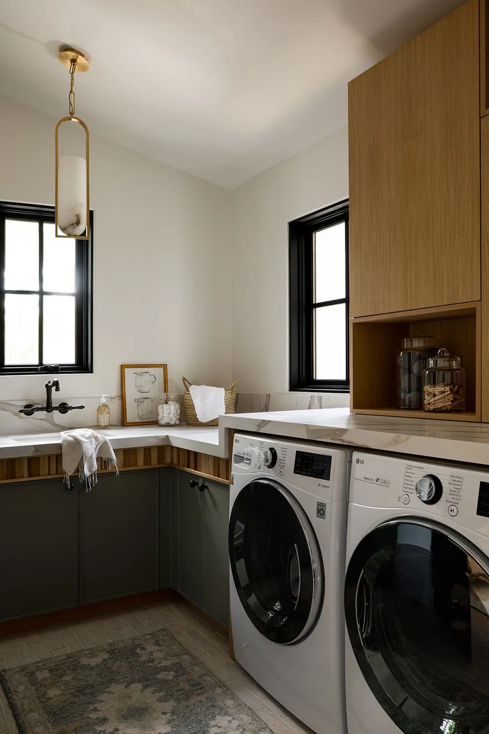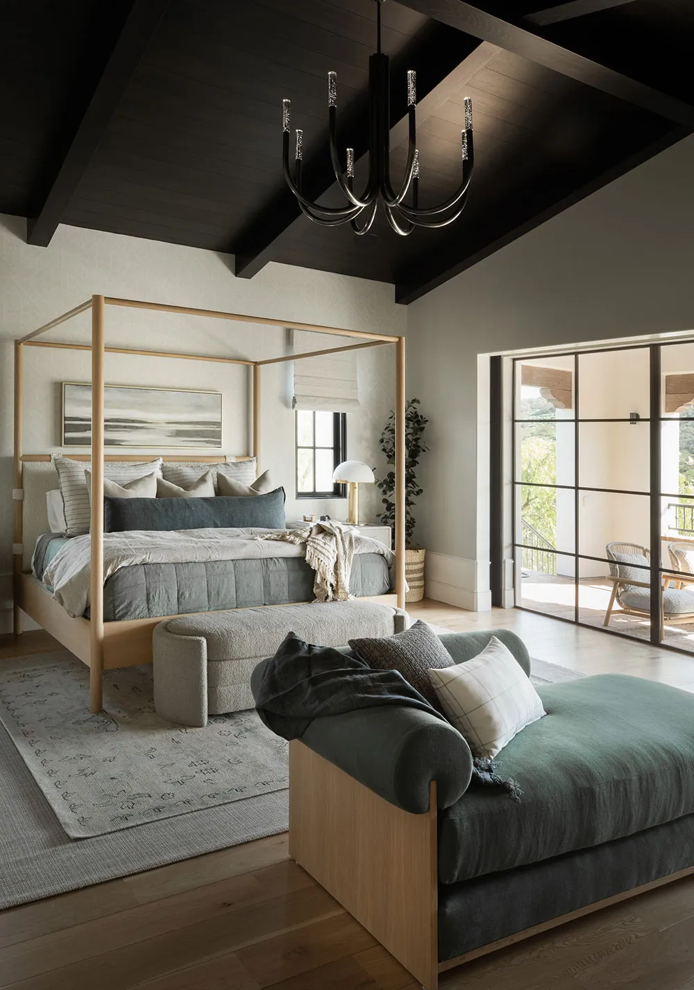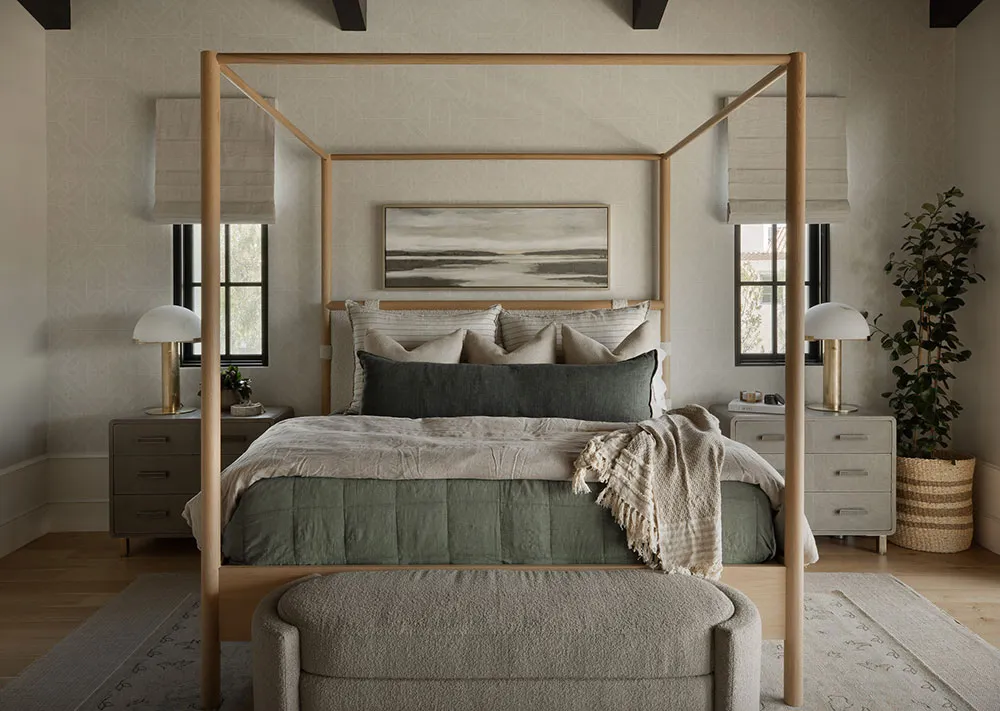 Oprócz kalsyfikacyjnego spokoju, w wnętrzach tego domu w Los Angeles można zauważyć niektóre nowoczesne rozwiązania, które są bardzo popularne wśród projektantów w naszych czasach.
