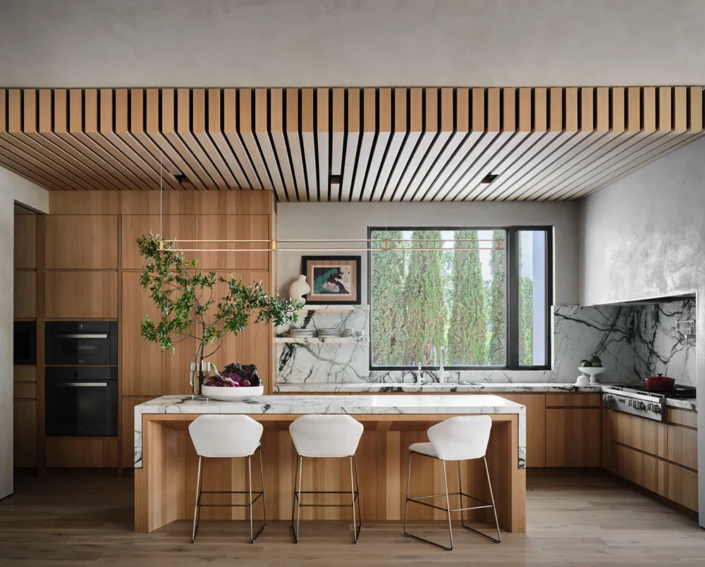 Spokojny nowoczesny интерьер w Sydney z arkami i kolumnami