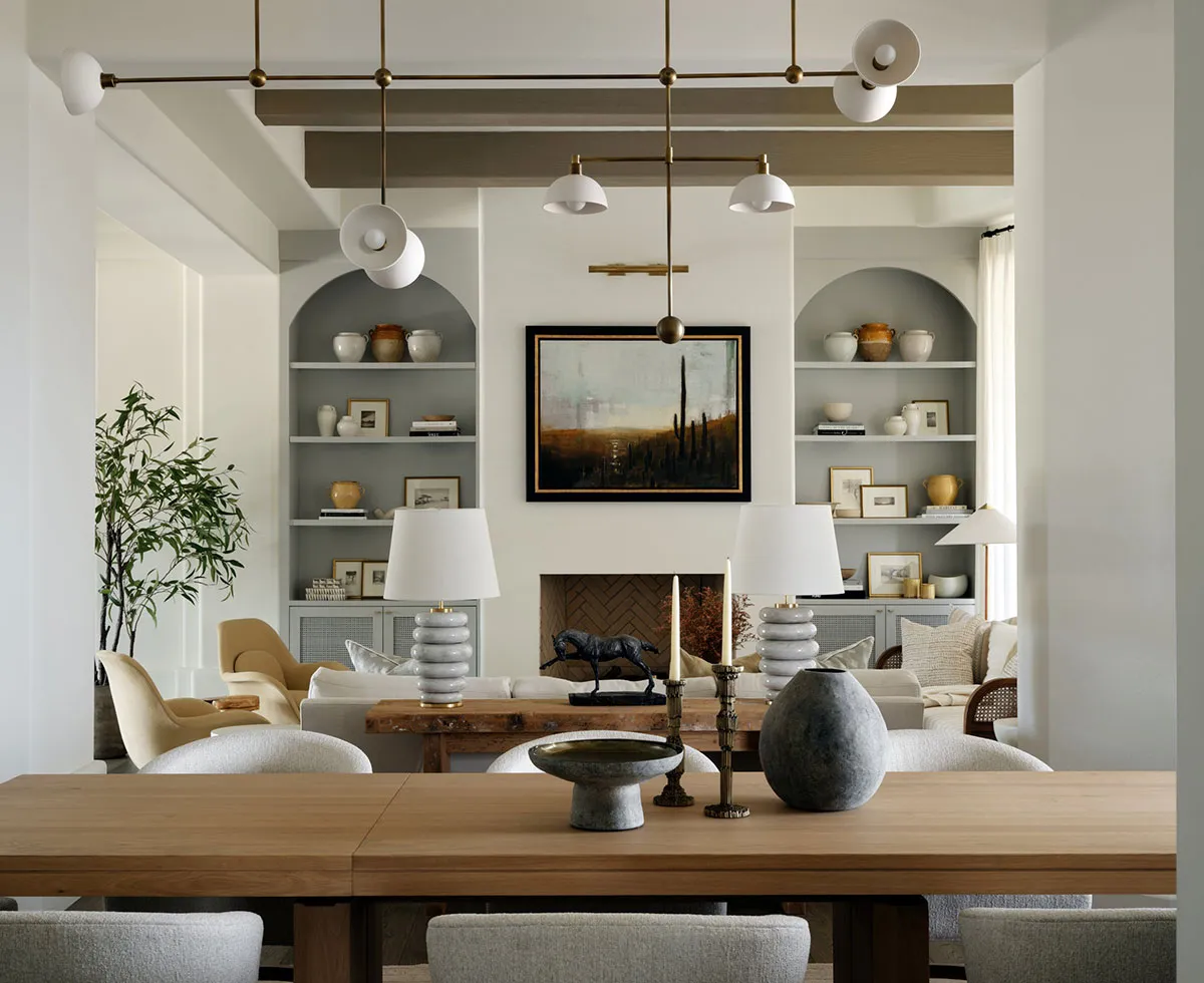 Elegancki wnętrza w neutralnych tonach na pustyni w Arizonie