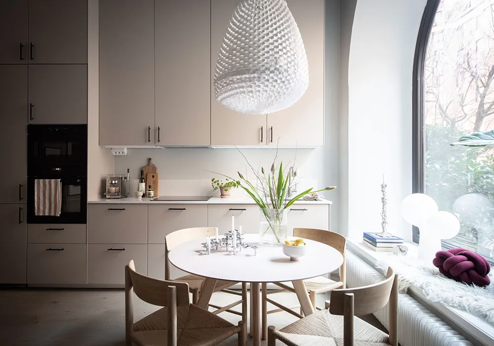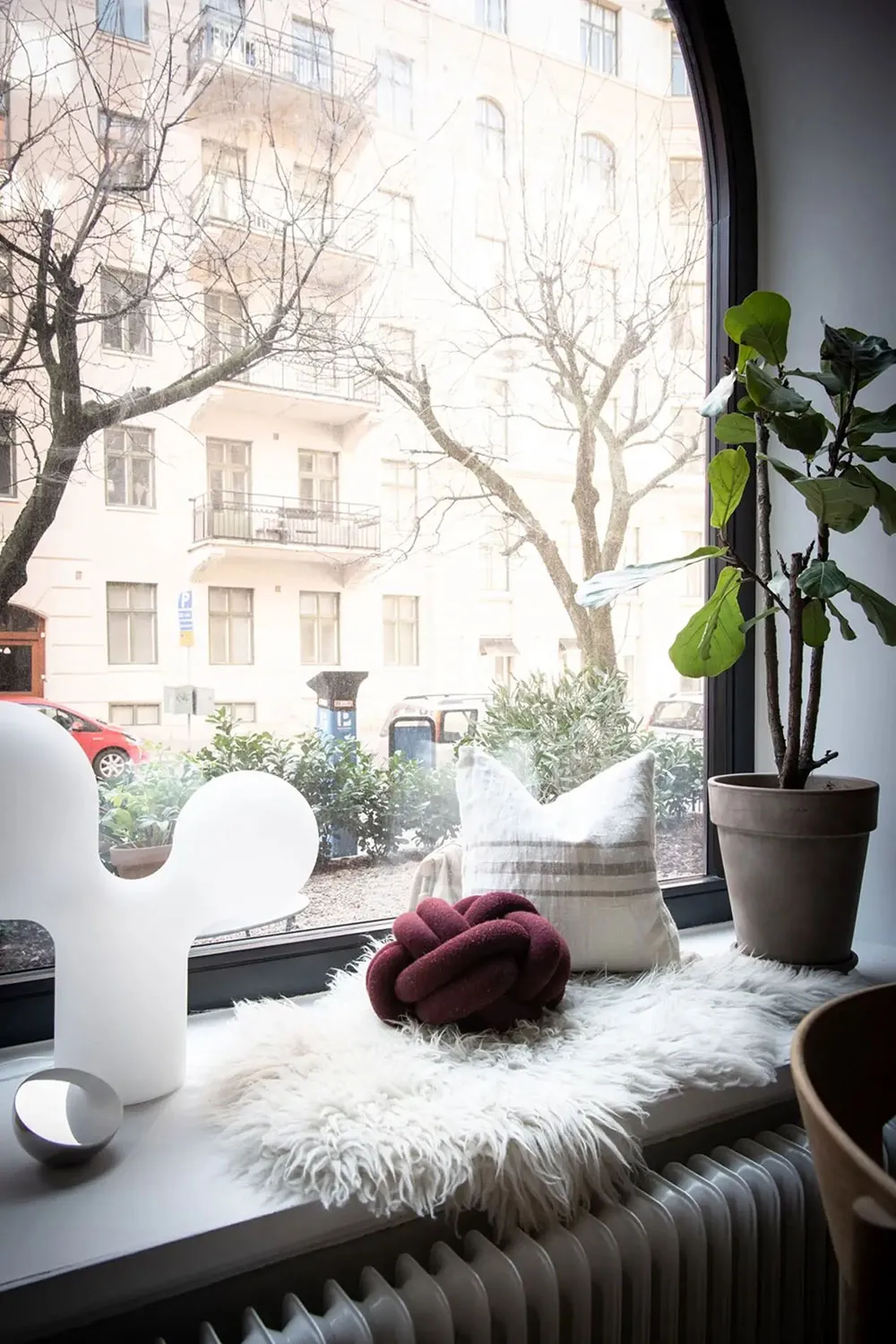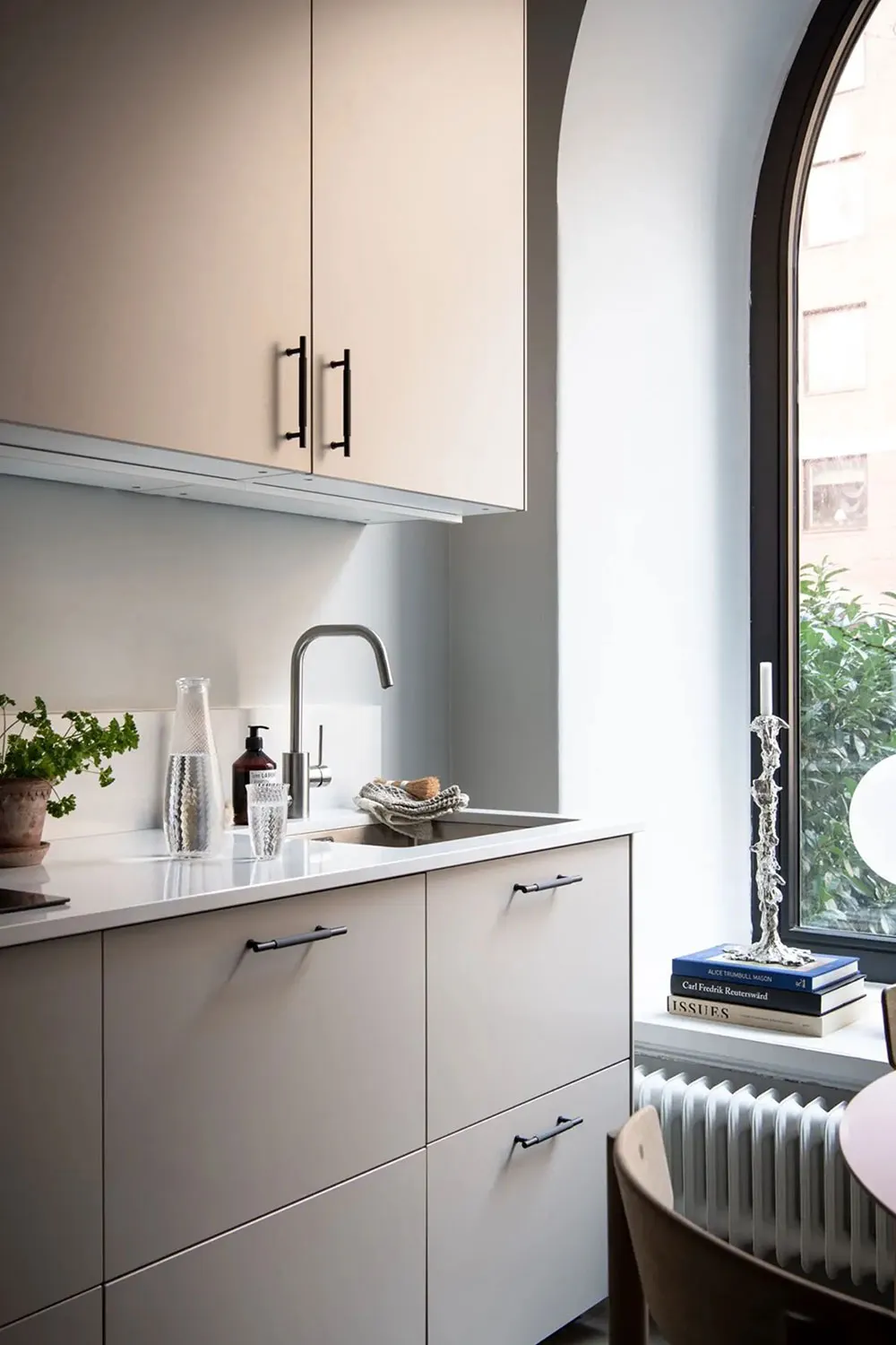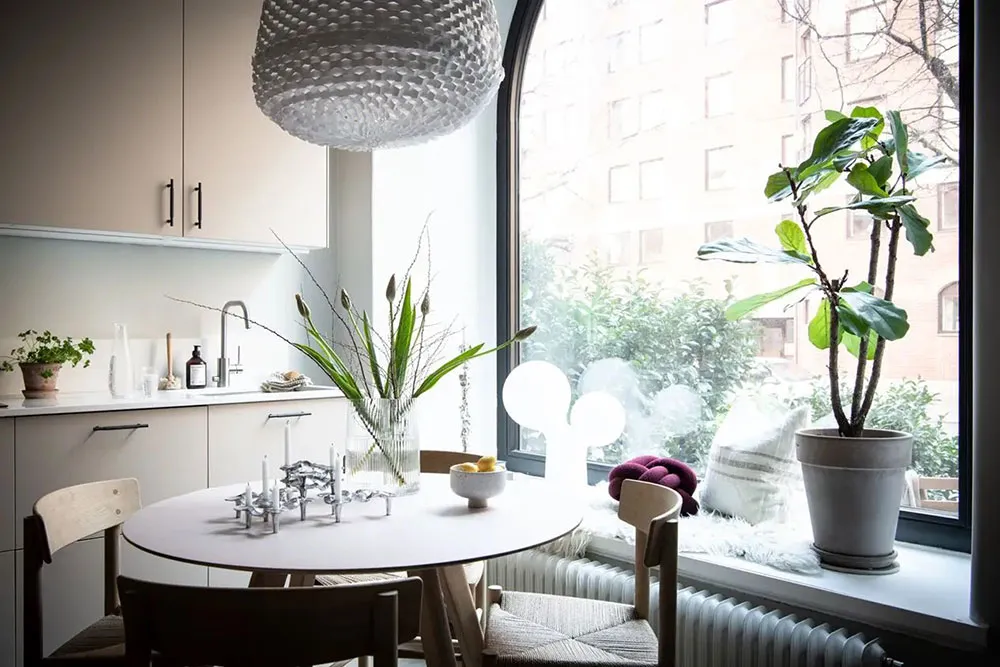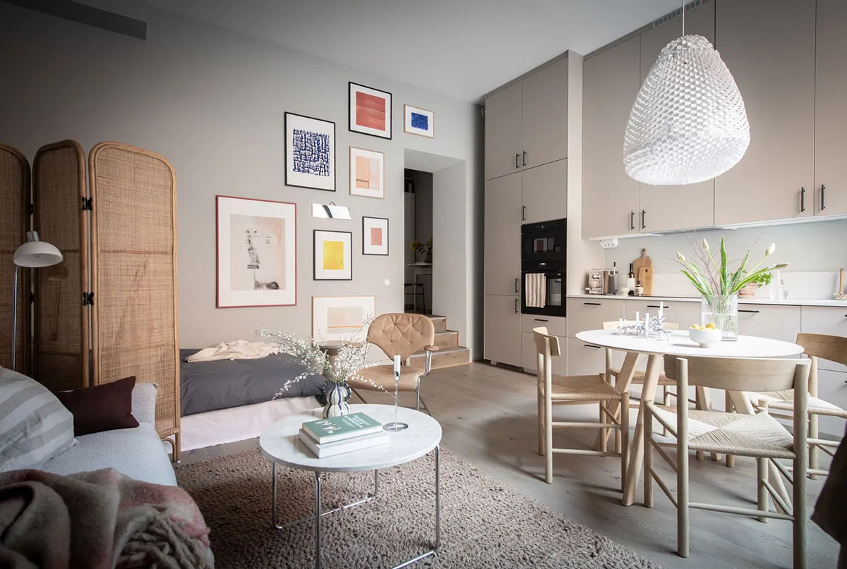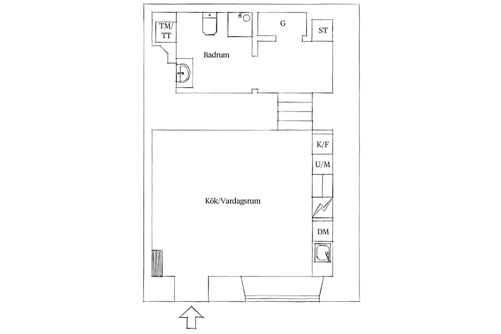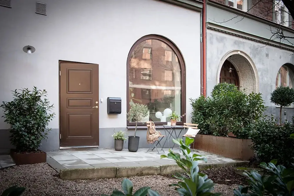 Ta mała apartamentowa studia w Getborgu posiada bardzo ciekawe wnętrze: osobne wejście, wysokie sufitы, luksusowe arkowe okno i nawet własny dworzec.