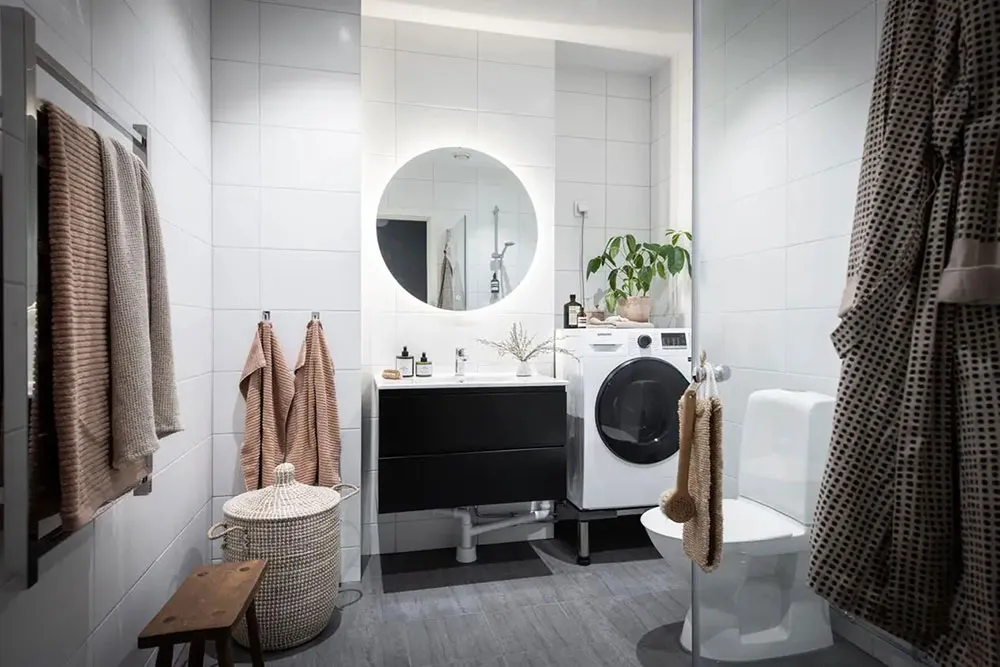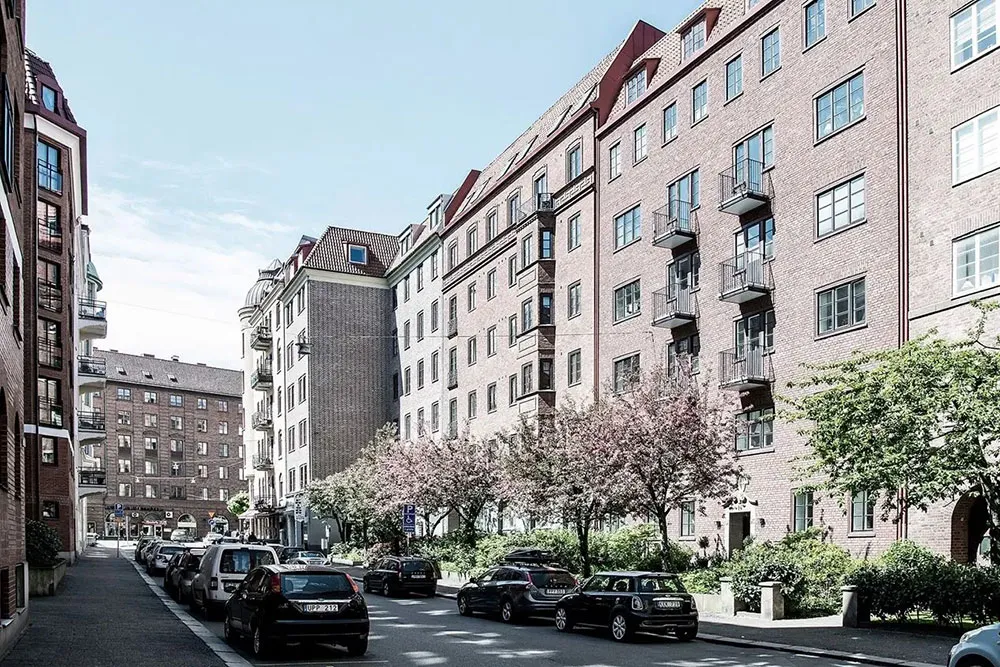 Jasna mansarda w Szwecji z ceglana ścianą i tarasem (82 m²)