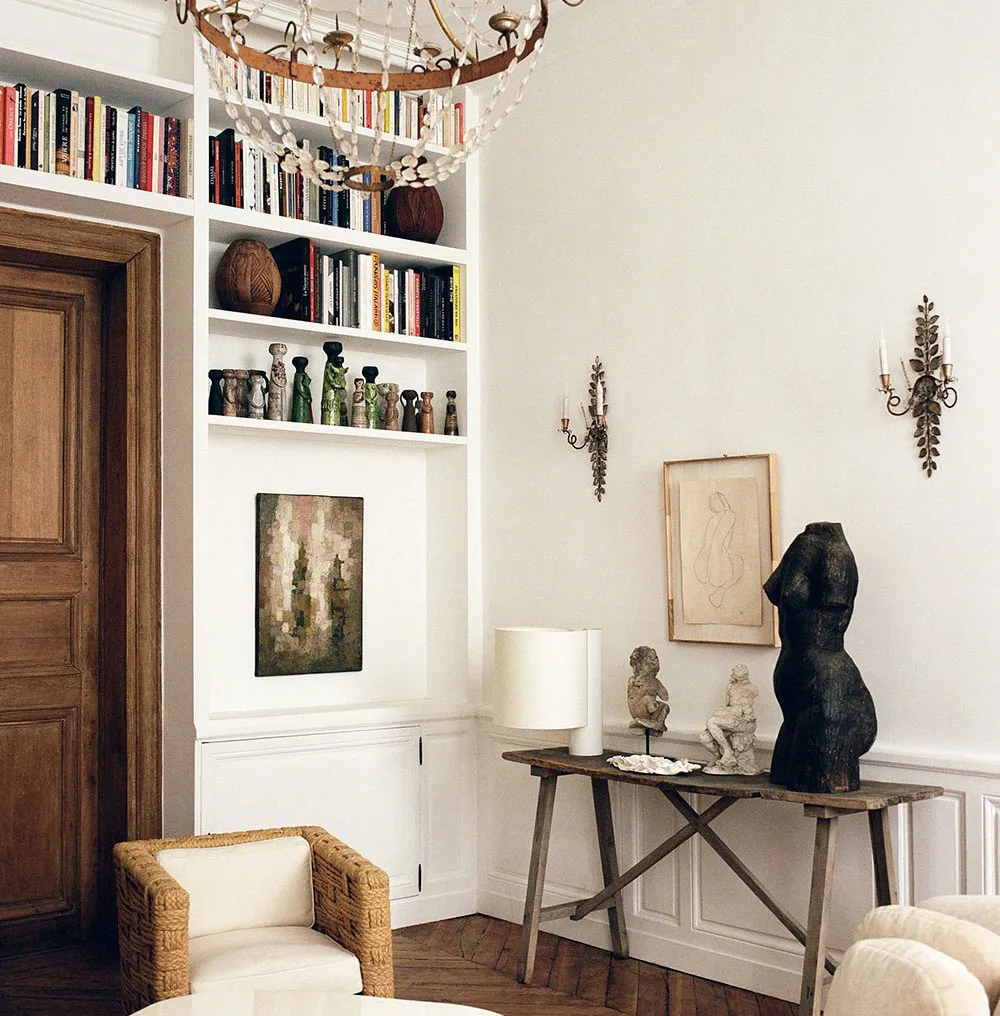 Skułptury, design vintage i nowoczesny styl: apartamenty w Paryżu (75 m²)