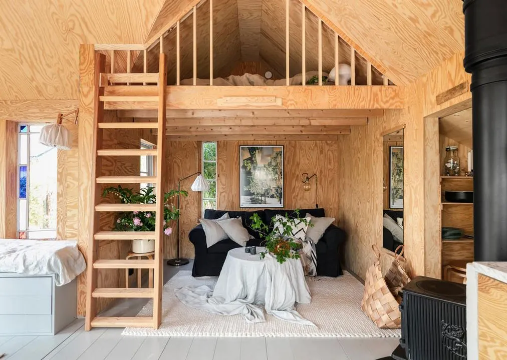 Tradycyjny z zewnątrz, niespodziewany w środku: domek na dzialce w Szwecji
