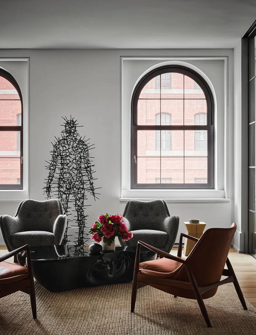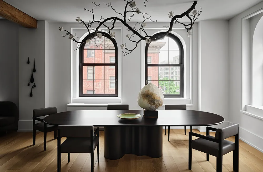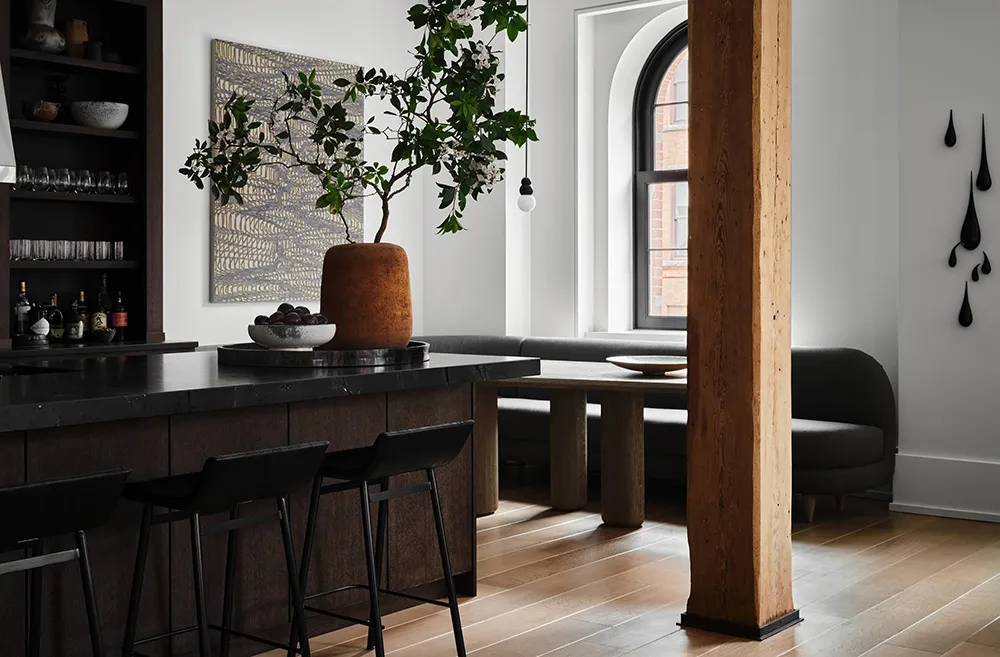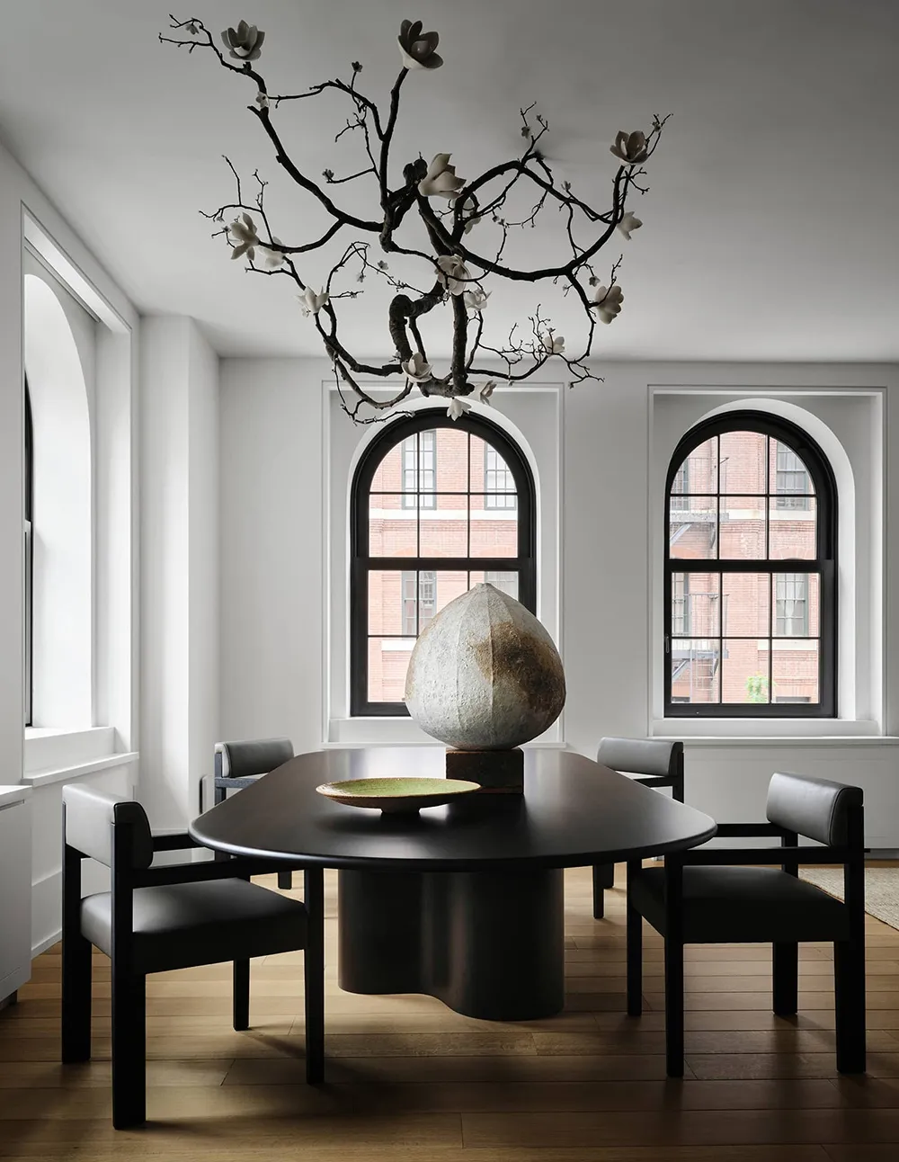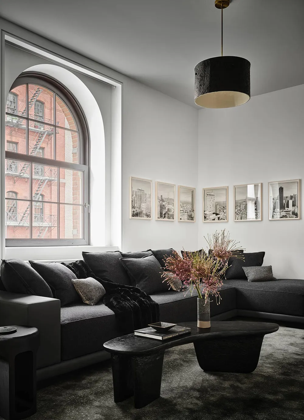 Stylowe ciemne akcenty i nowoczesne sztuki: apartamenty w Nowym Jorku