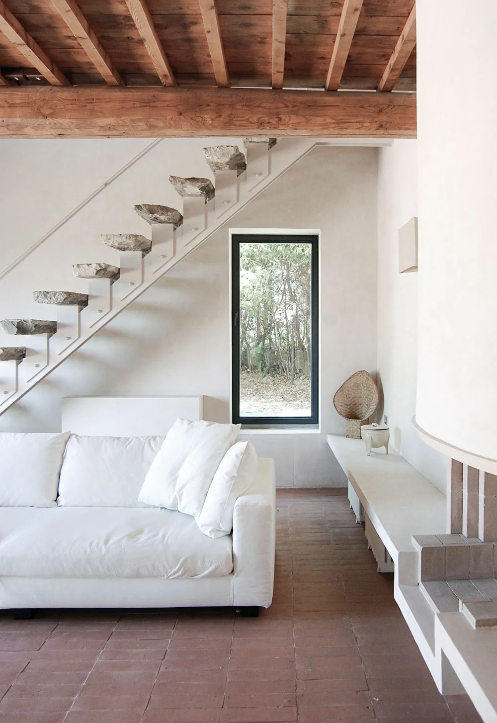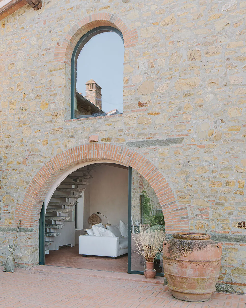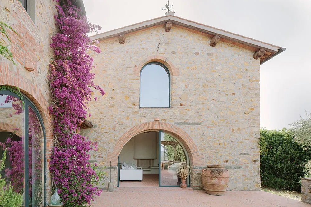 Podczas rekonstrukcji tego starego farmhouse'a w odległości 20 km od Florencji architekt Marco Melotto zwracał szczególną uwagę na zachowanie i odbudowę wspaniałej historycznej otoczki budynku ze wszystkimi jego arkami, kamiennym murowaniem i wewnętrznymi belkami.