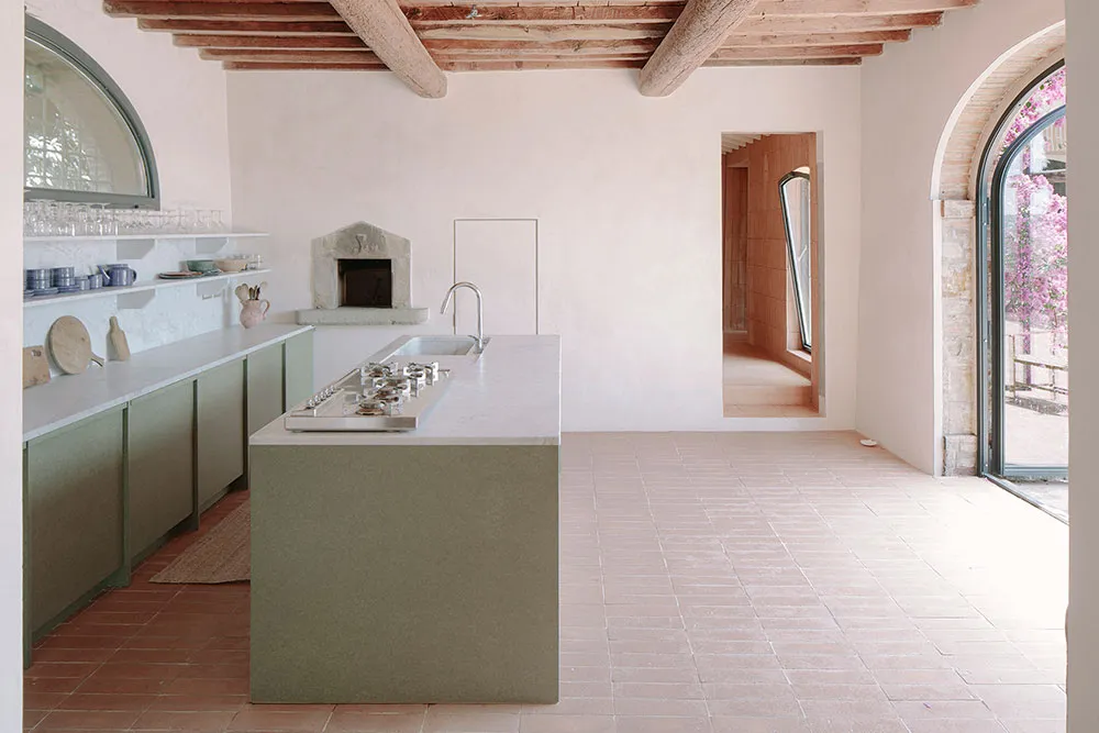Minimalizm, terakota i drewno: rekonstrukcja farmhouse w Toskanie