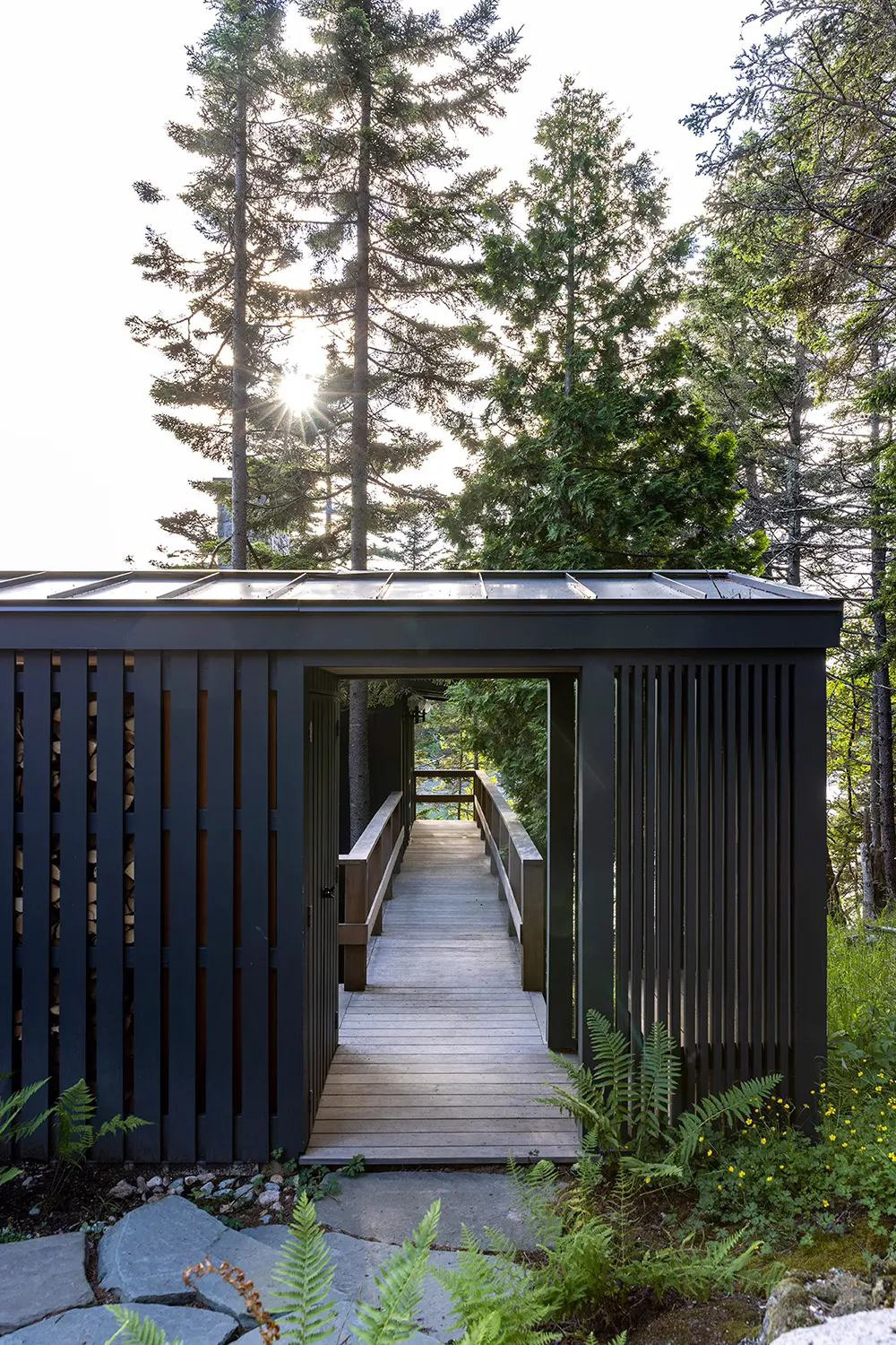 Stylowy czarny domek utulony w lesie