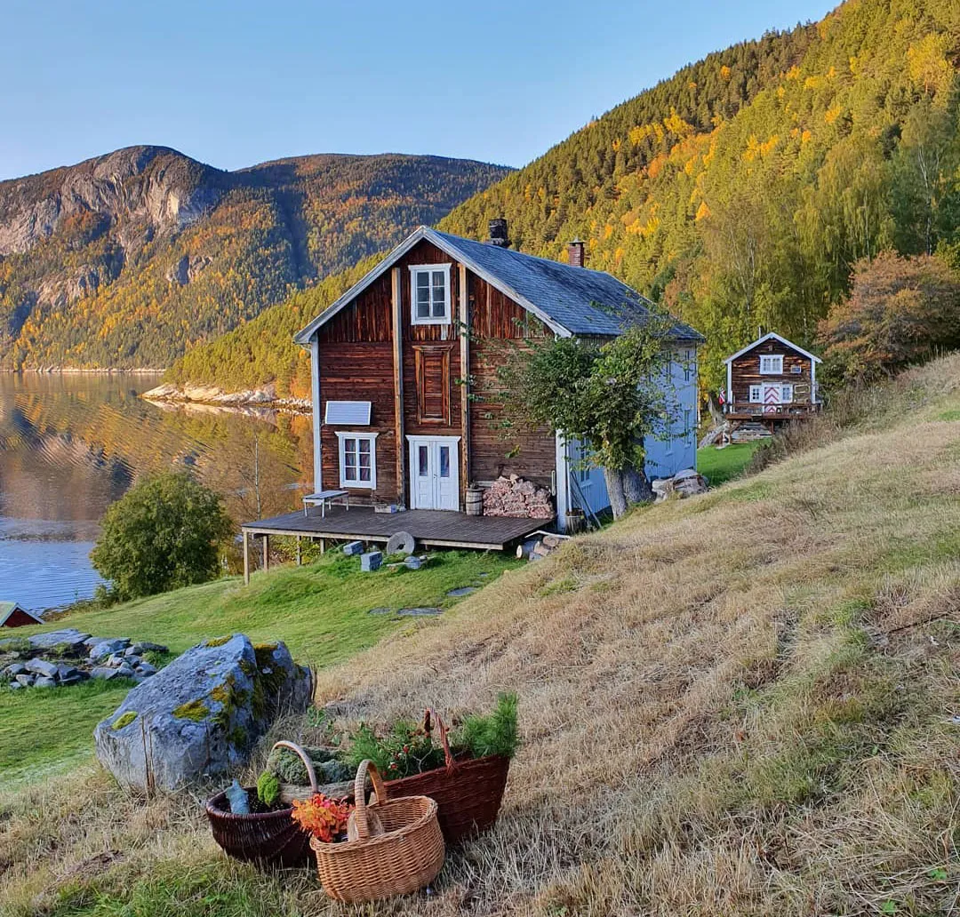 Ten tradycyjny skandynawski kottędż przy fiordzie pokazuje, jak kiedyś ludzie w Norwegii odpoczywali w weekendy.