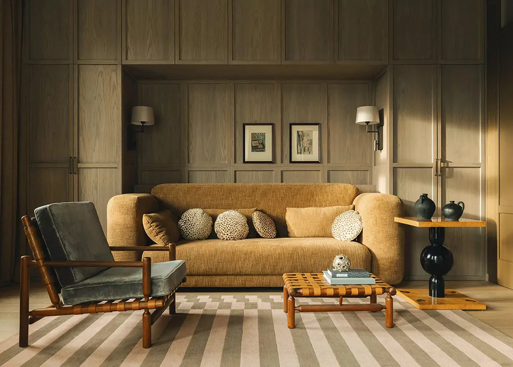 Kesonowy sufit i eleganckie linie: mieszkanie dla młodej rodziny w Mediolanie