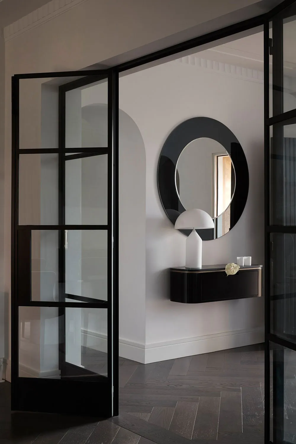 Kesonowy sufit i eleganckie linie: mieszkanie dla młodej rodziny w Mediolanie