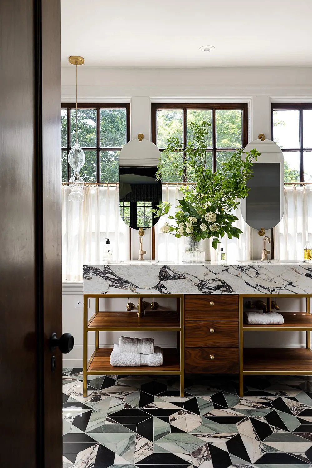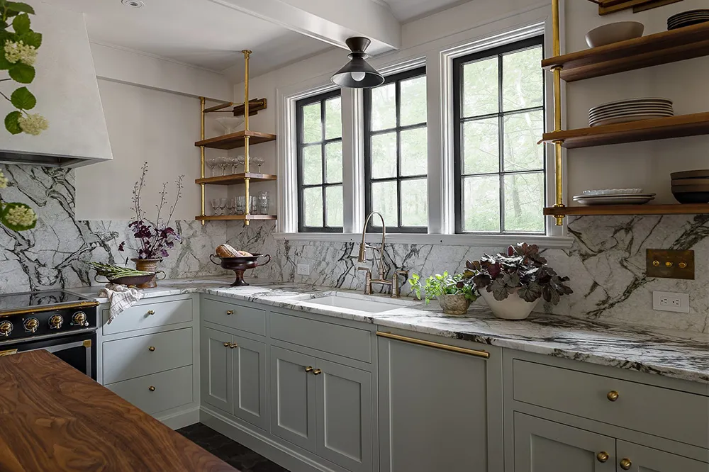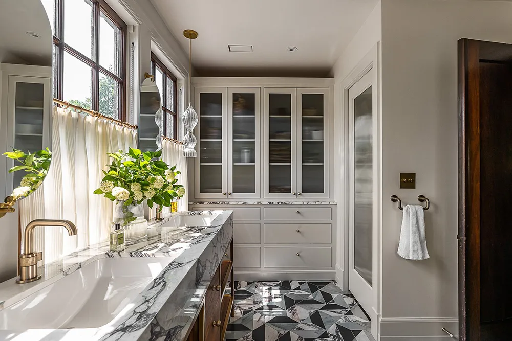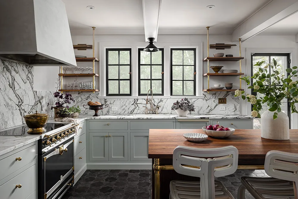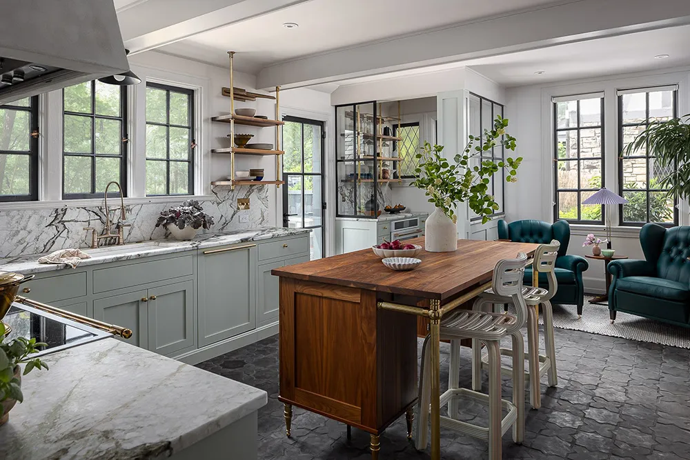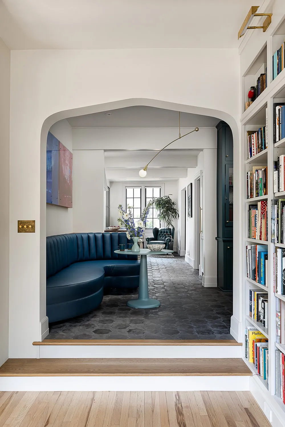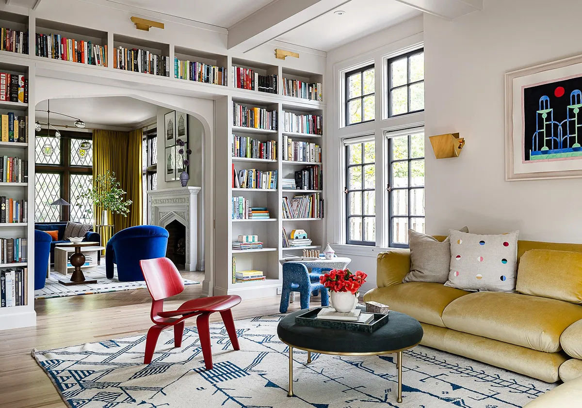 Duża biblioteka i kolorowy dekor w designie historycznego domu w Kentucky