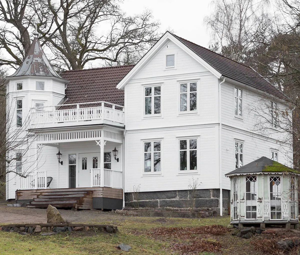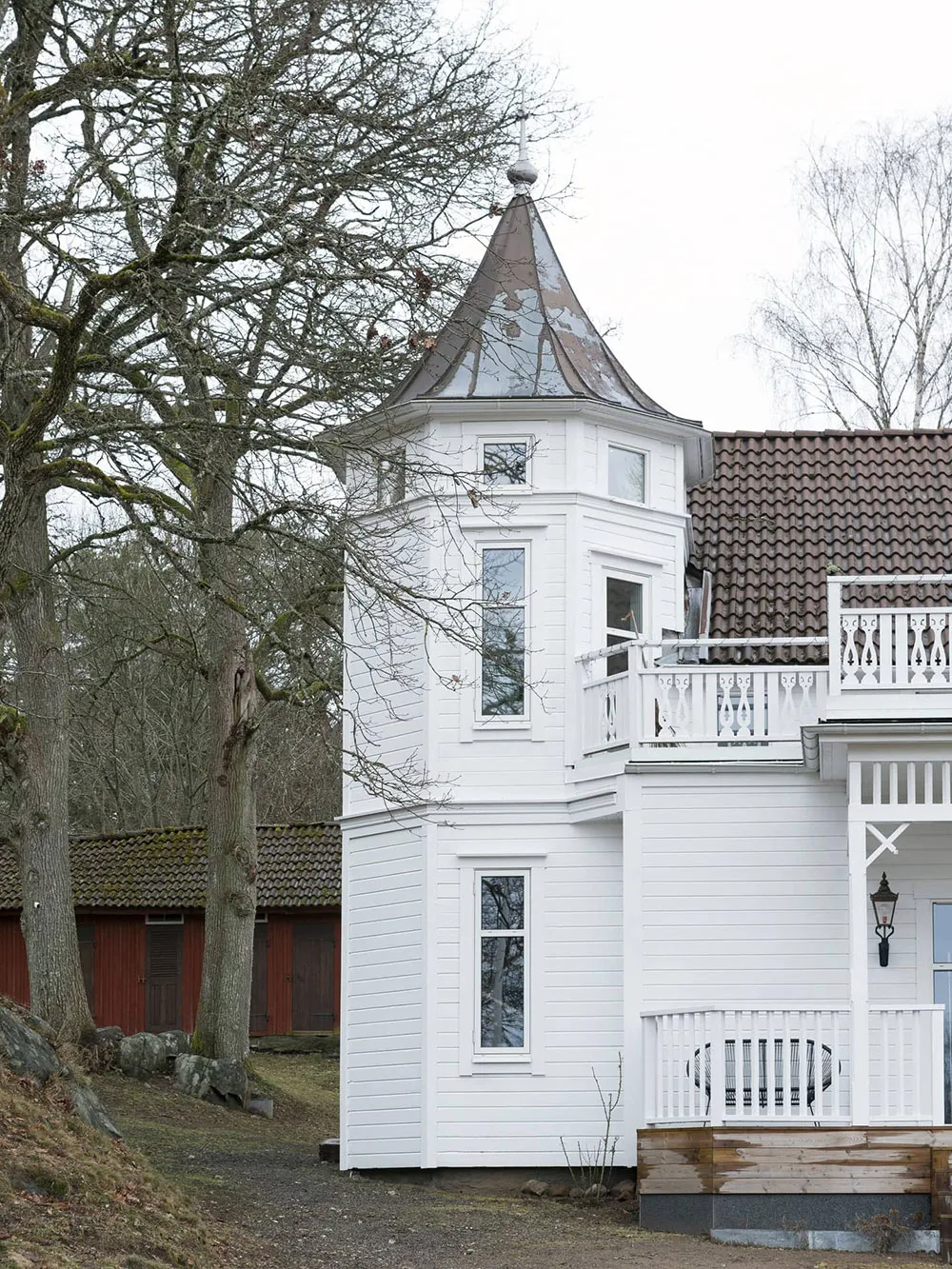 Świetne nowoczesne wnętrza jedno- wiekowego domu z wieży w Szwecji