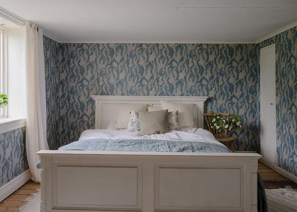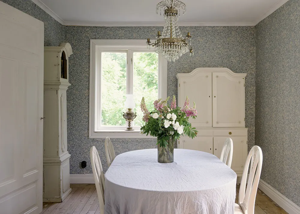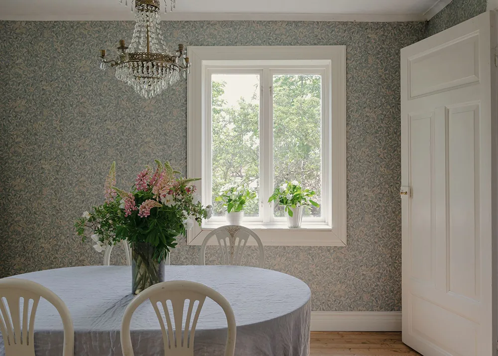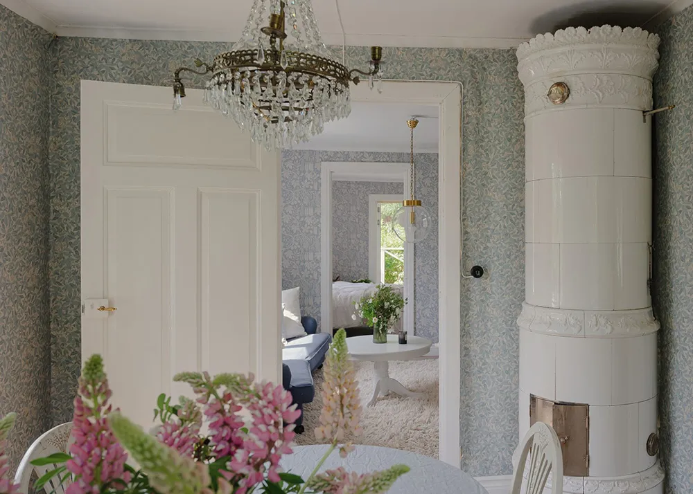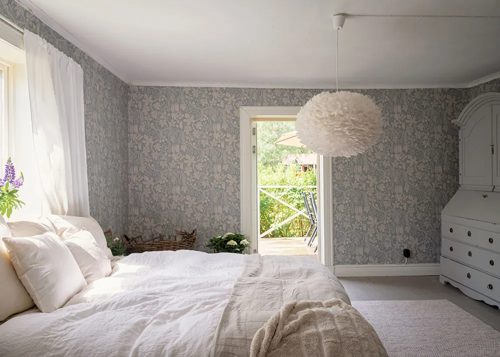 Królestwo kwiatowych tapet w pięknym wiejskim domku w Szwecji