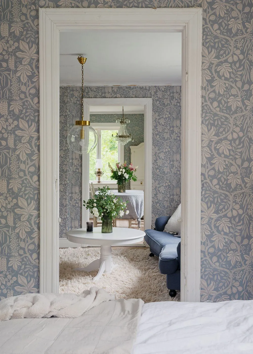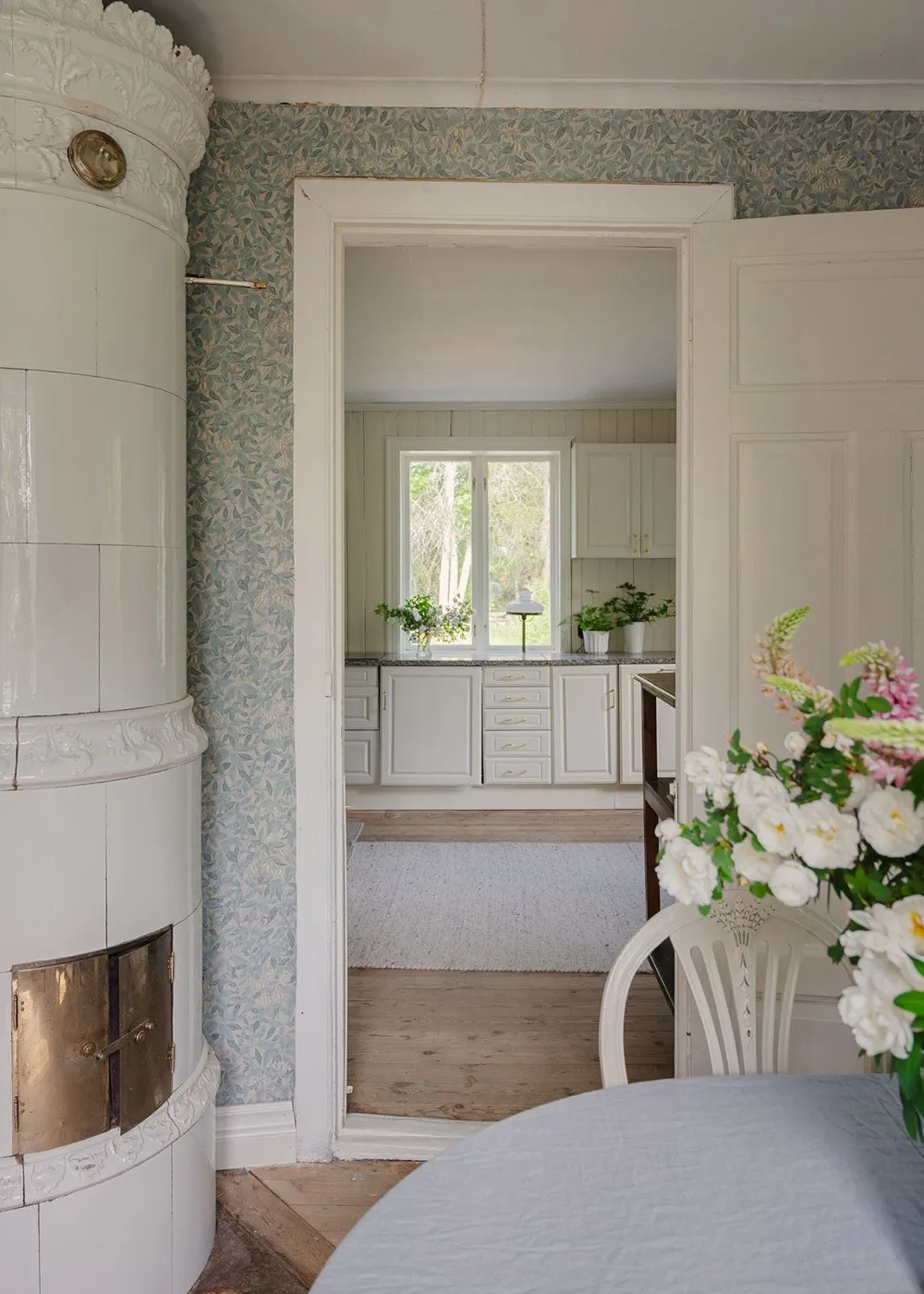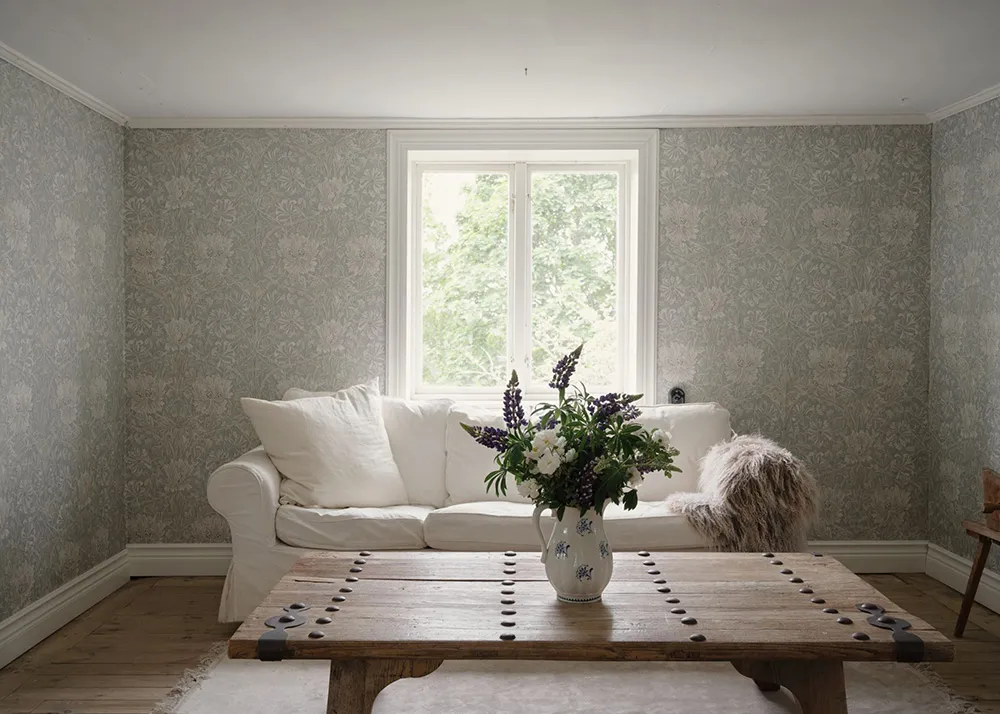 Królestwo kwiatowych tapet w pięknym wiejskim domku w Szwecji