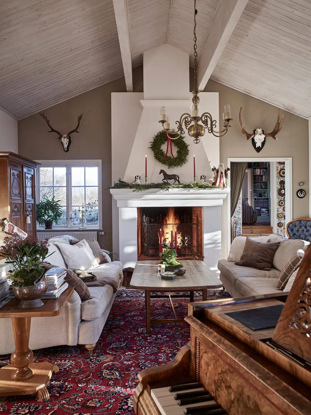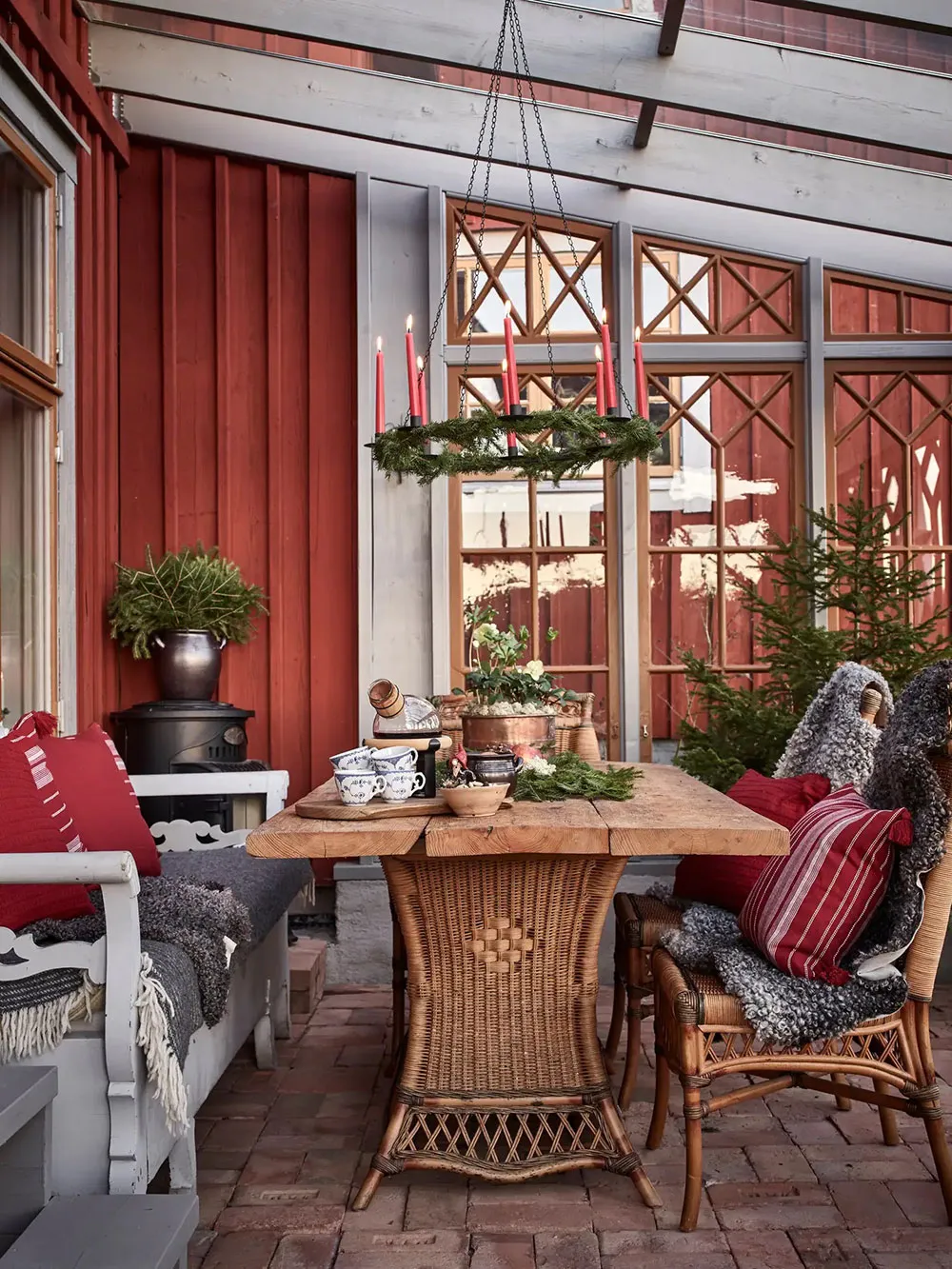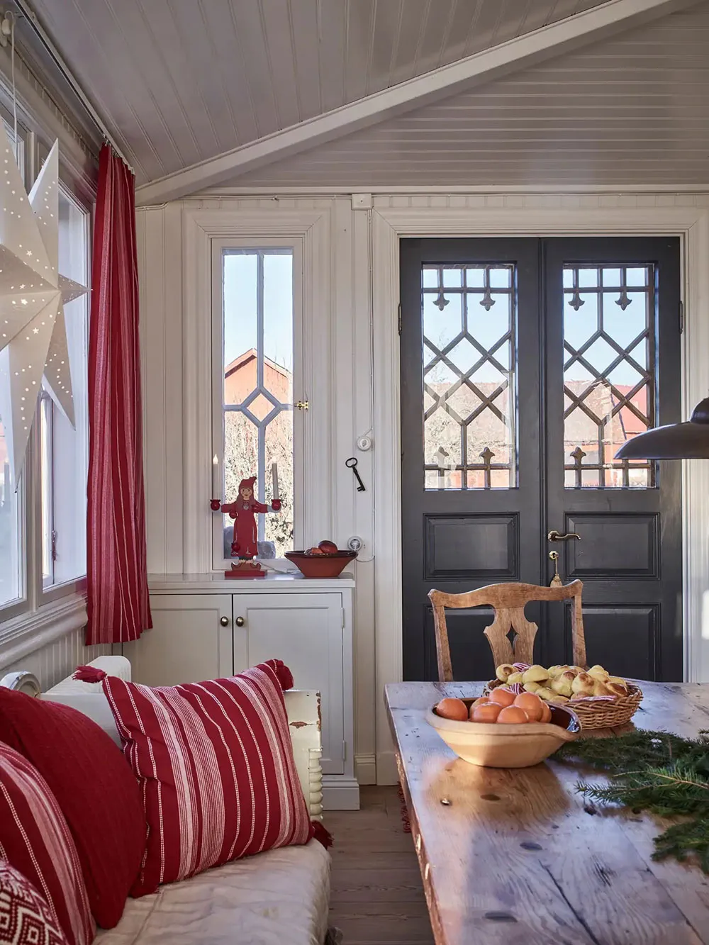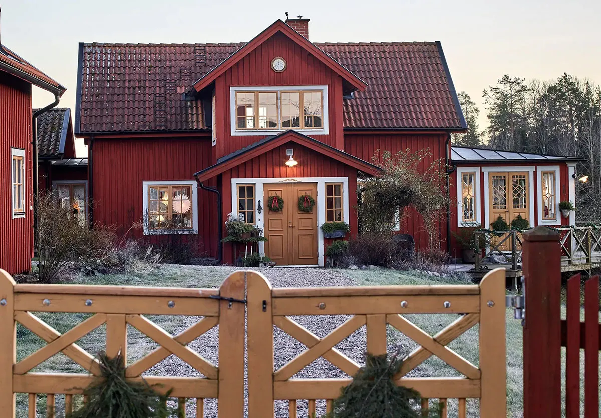 Niesamowity czerwony kottedż w Szwecji do przytulnych świąt