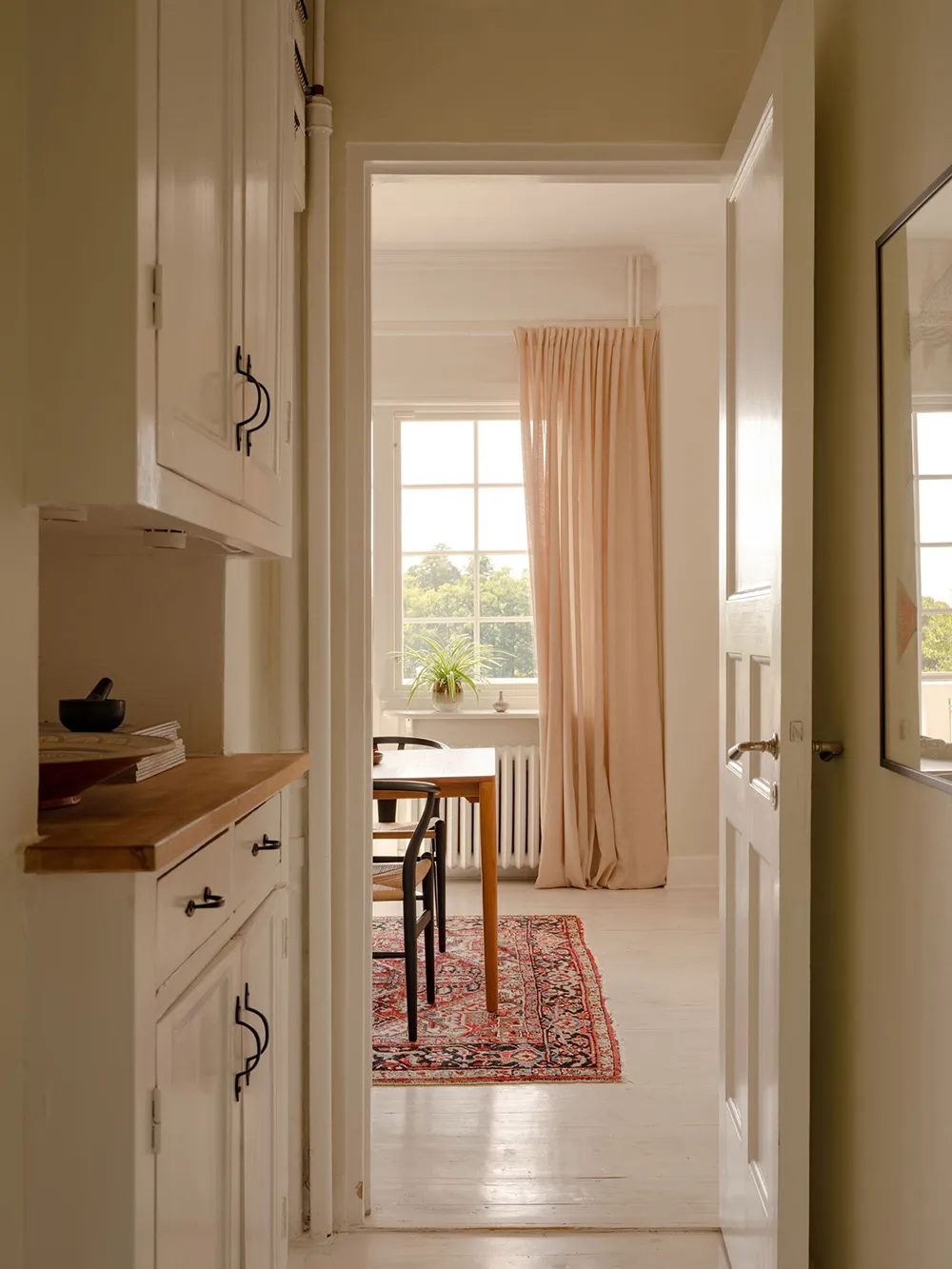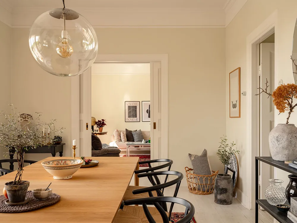Malowane ściany i nietypowa biała-i-zielona kuchnia: mieszkanie w Gotenburze (75 m²)