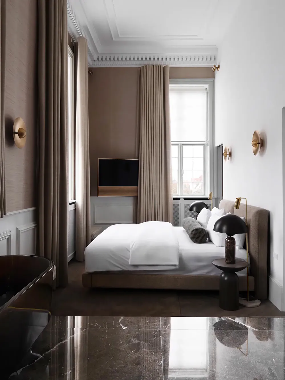 Arki, narożniki i oshutkowane ściany: niezwykły wnętrze w Londynie