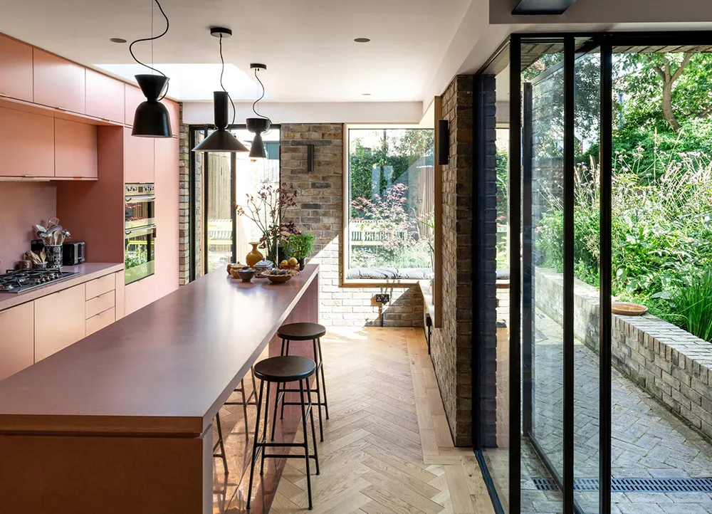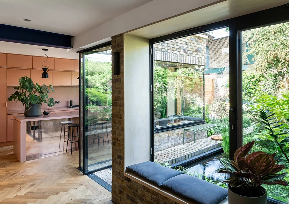Projekt rekonstrukcji tego niezwykłego ceglany domu w Londynie został zaprojektowany z myślą o jego wspaniałym ogrodzie — właściciele chcieli lepszego interakcji z naturą, która miała odgrywać ważną rolę w nowym designie.