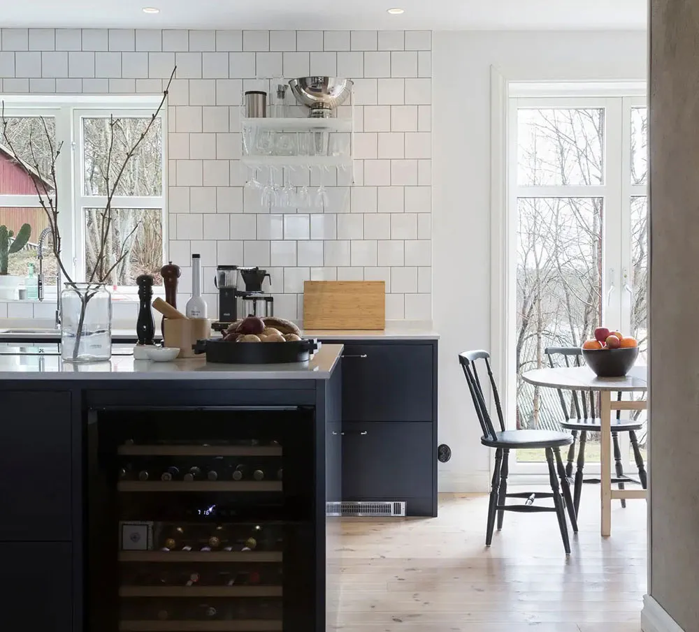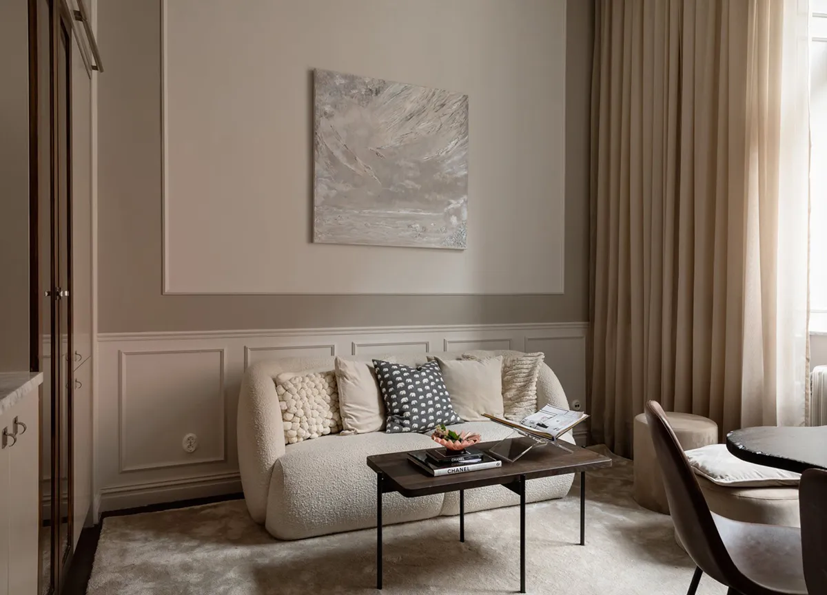 Stylowy kolor ścian w projekcie małego mieszkania w Stokholmie