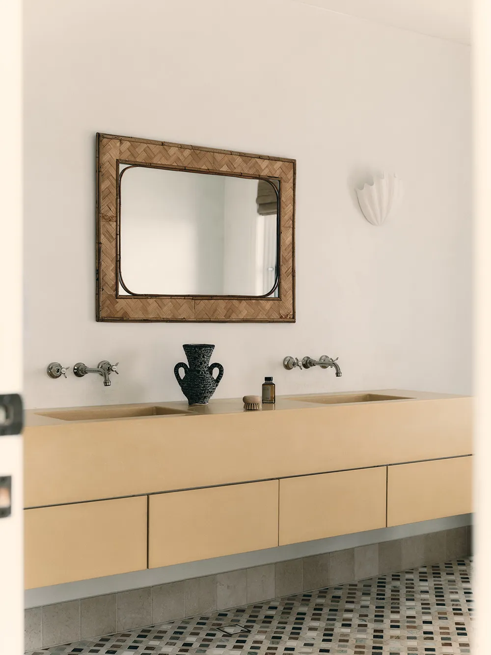 Elegancki wnętrza w neutralnych tonach na pustyni w Arizonie