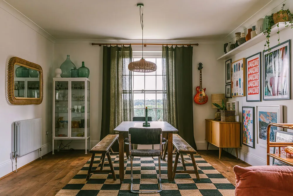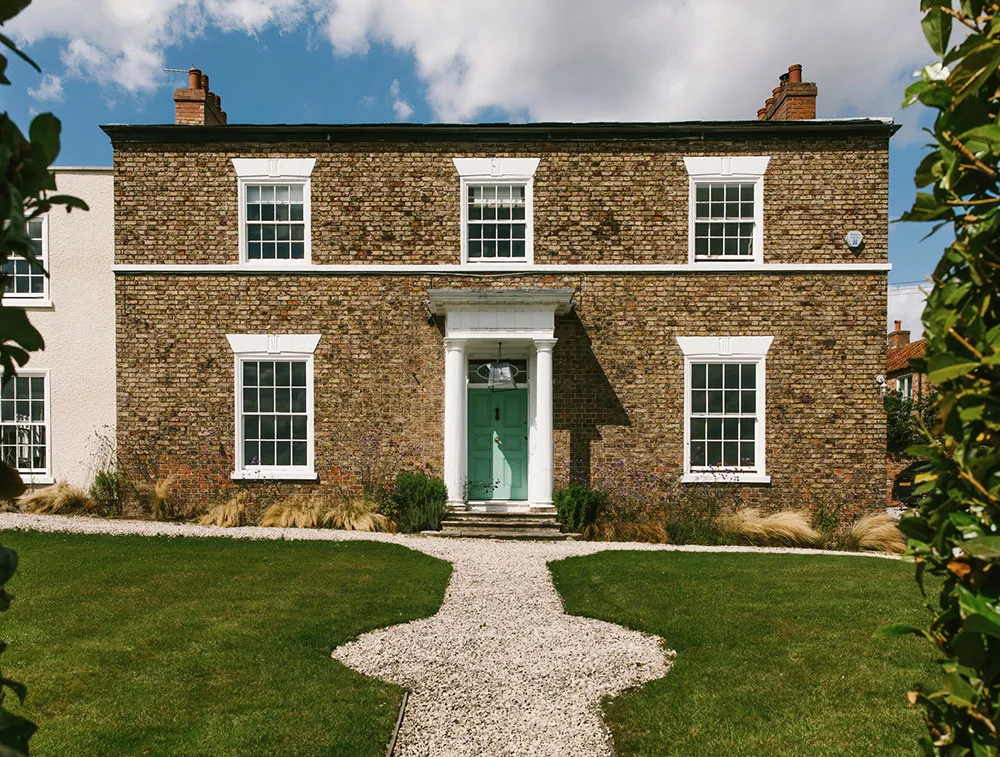 Eksterior tego starożytnego georgijskiego pałacu w Anglii jest rygorystyczny i solidny: proste linie, klasyczny portyk wejściowy, duże białe okna i czerwony cegła w wykończeniu.