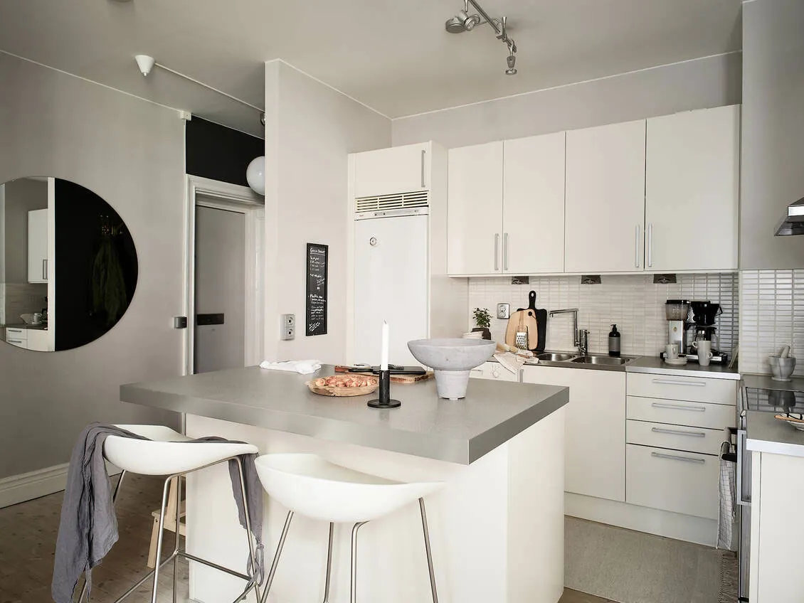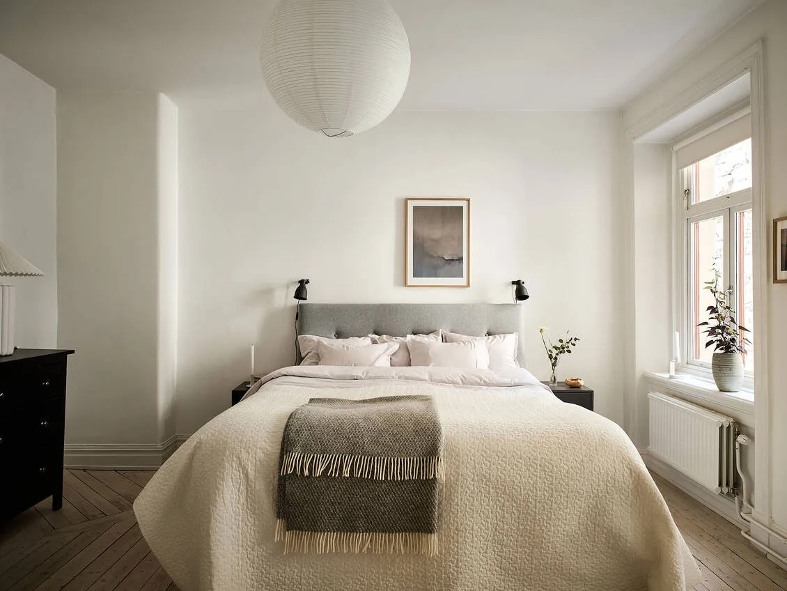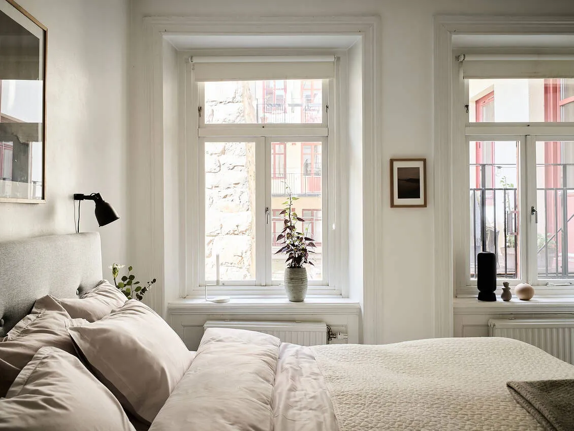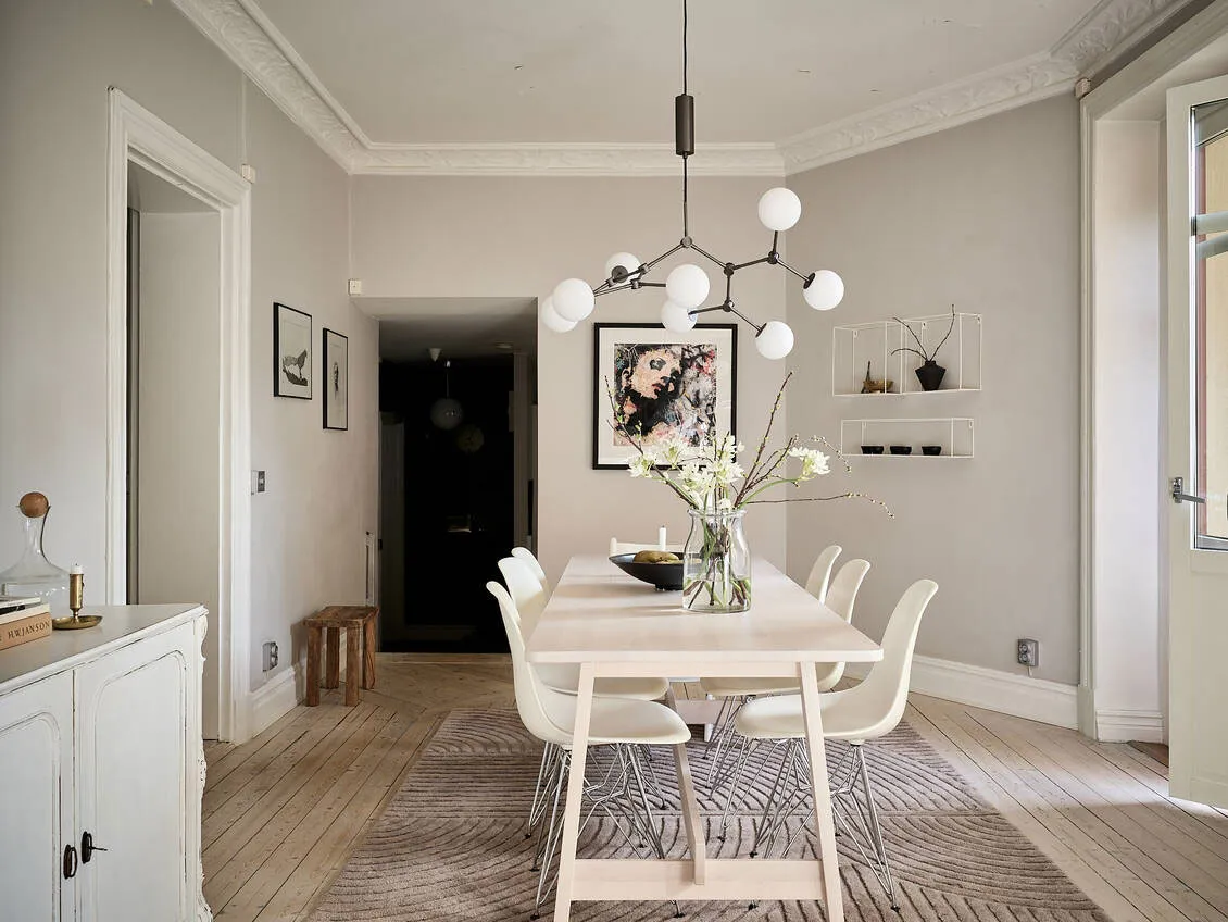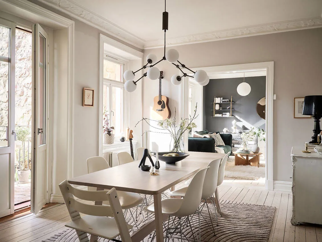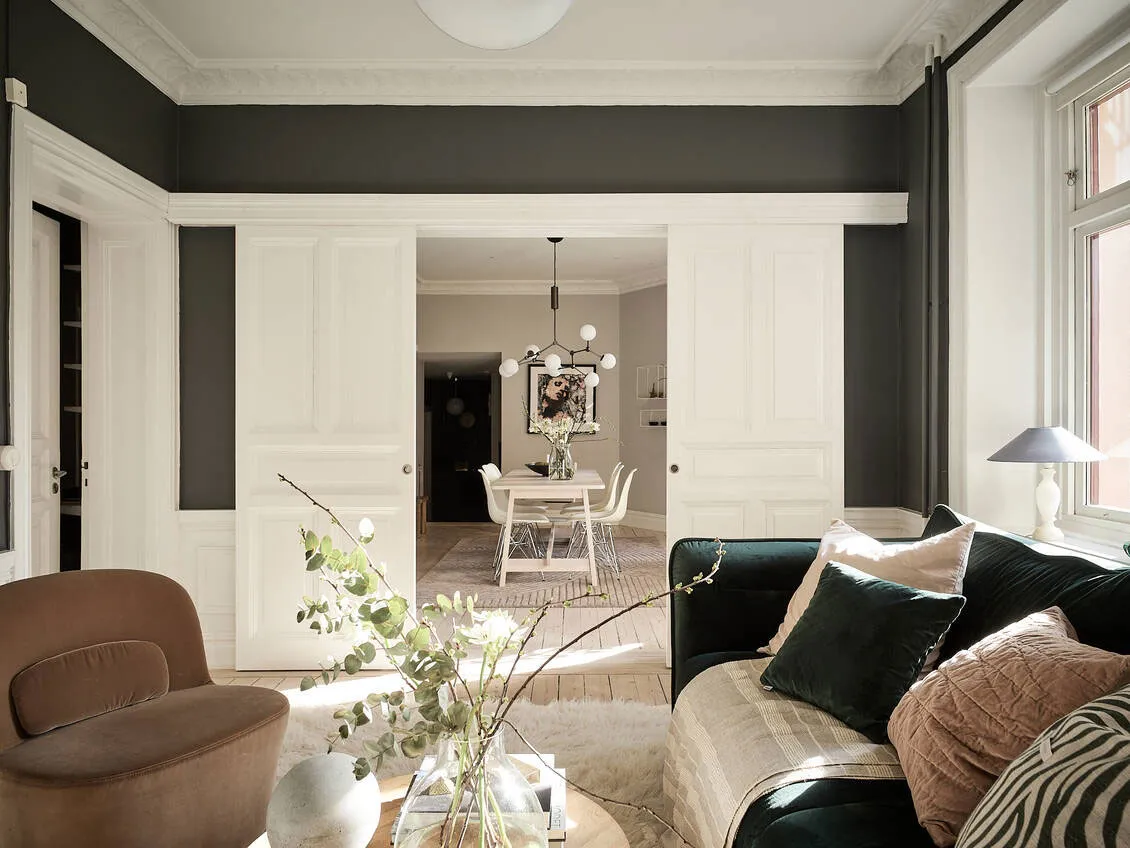 Kontrastowe ściany w designie jasnego szwedzkiego mieszkania