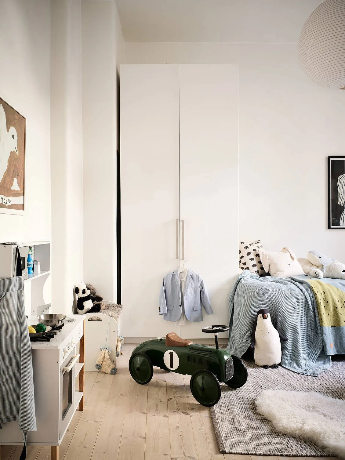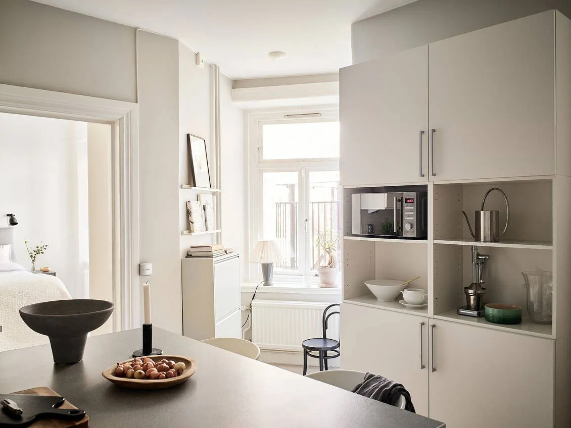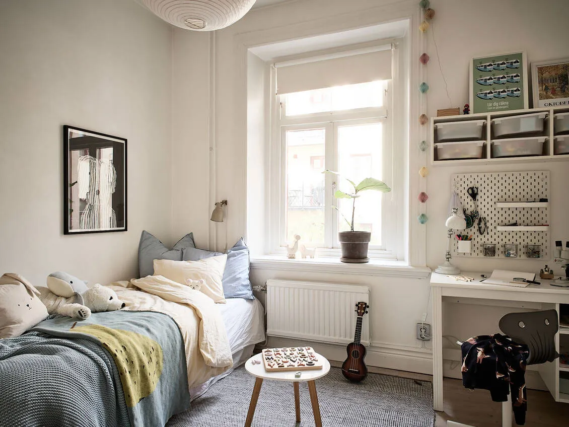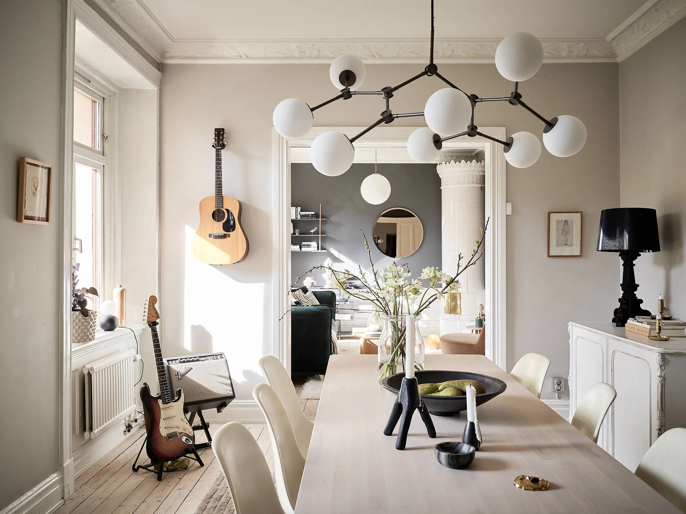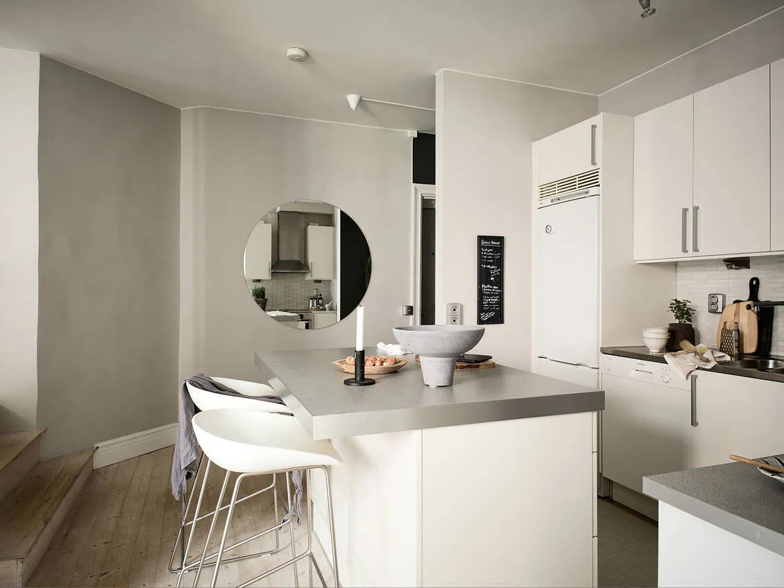 Kontrastowe ściany w designie jasnego szwedzkiego mieszkania