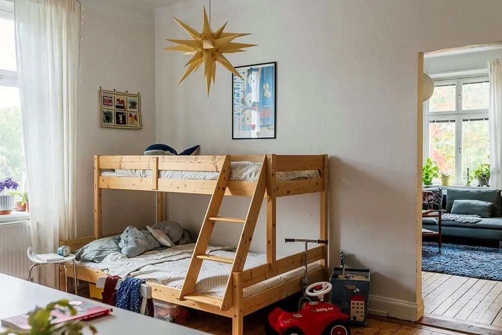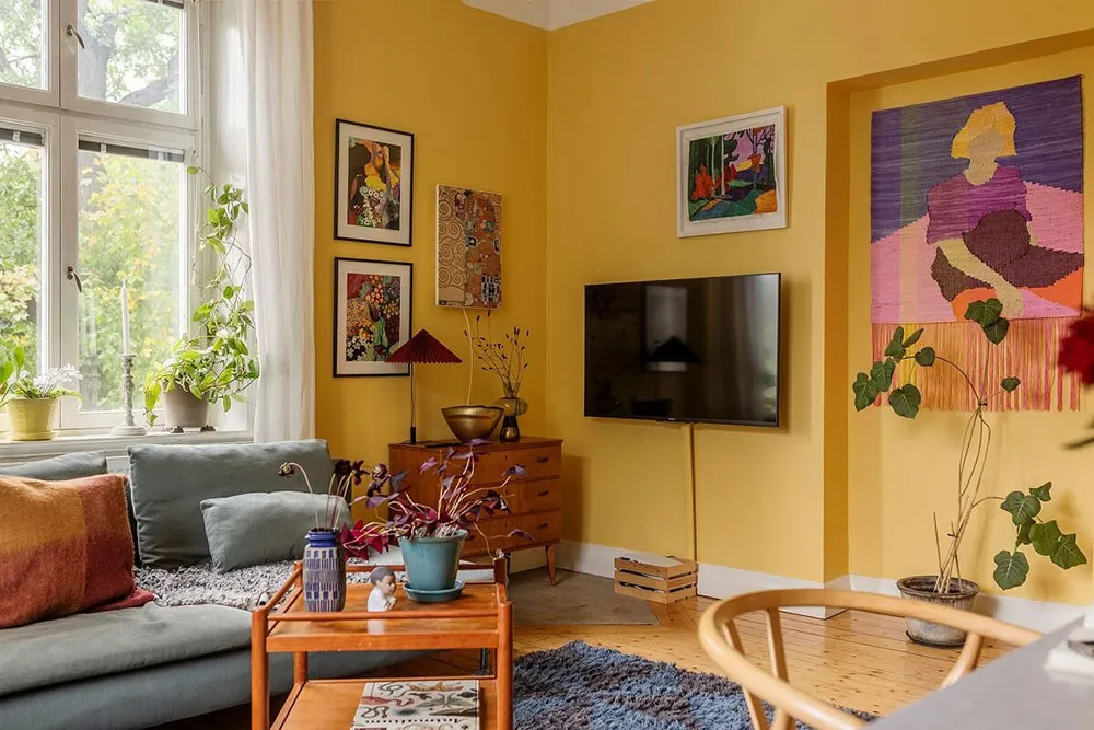 Żółte ściany i jasne plakaty: radosny интерьер w Szwecji