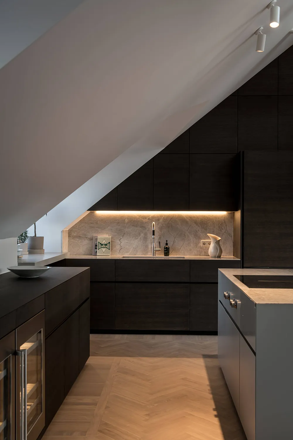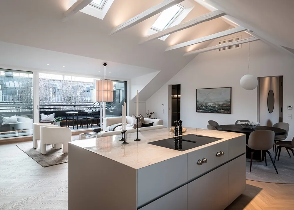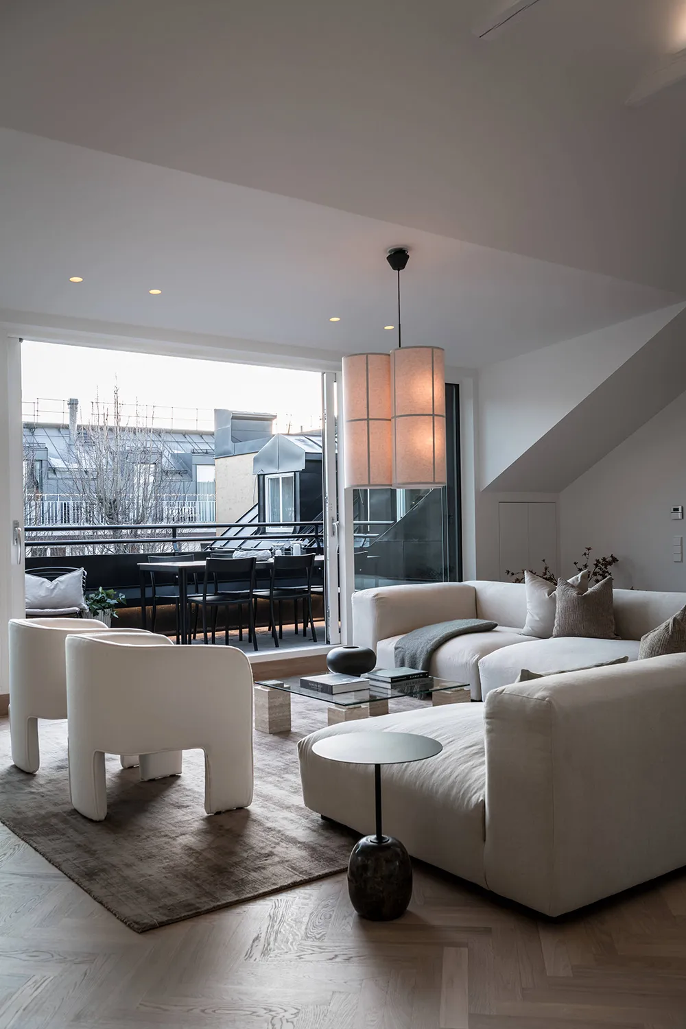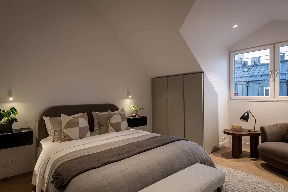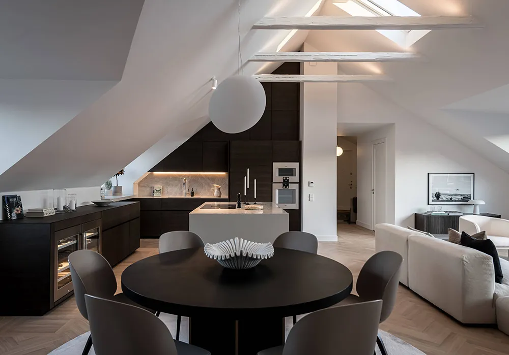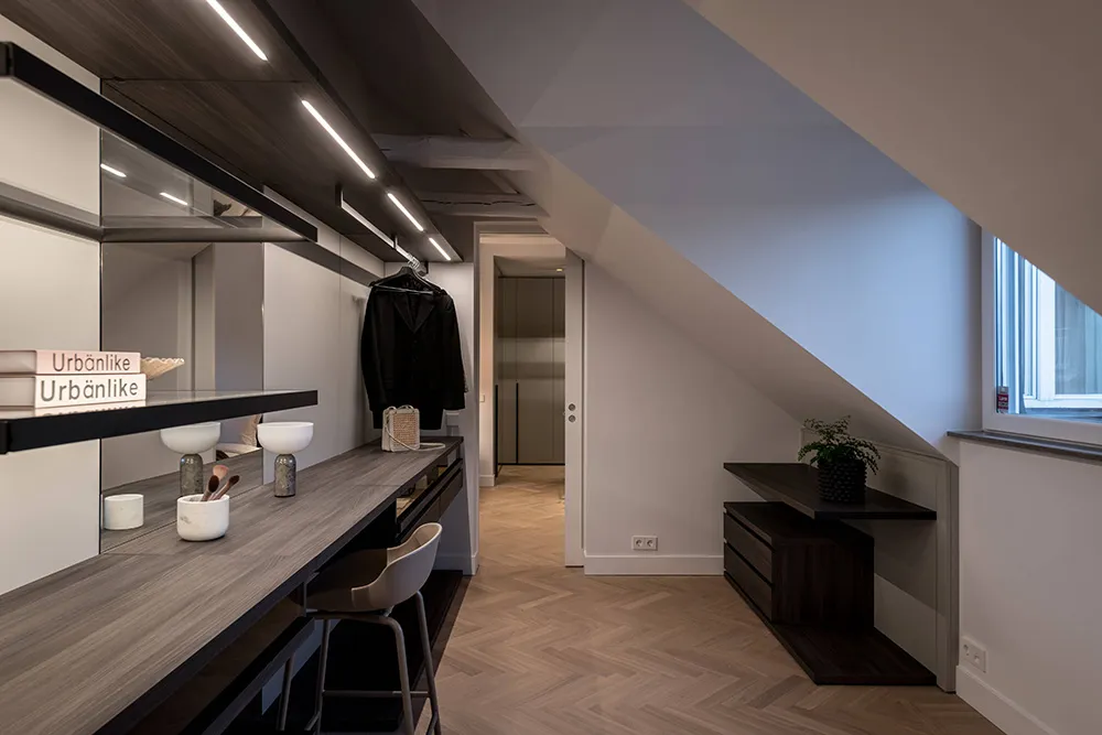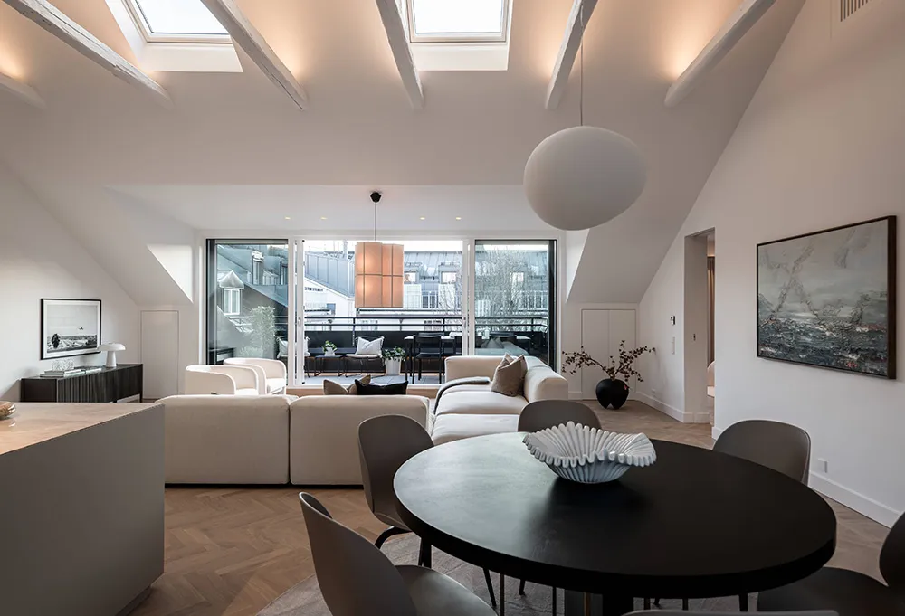 W tym efektnym mieszkaniu pod dachem w Stokholmie główną luksusem jest jego unikalne wnętrze, dlatego projektanci zdecydowali się na lakoniczny minimalistyczny design.