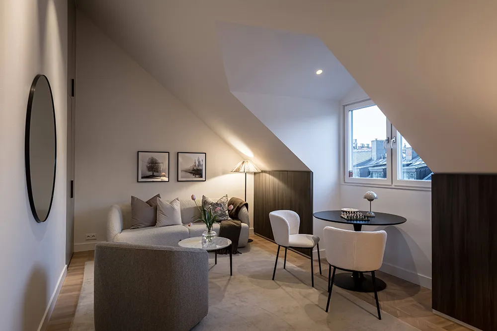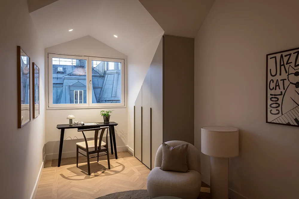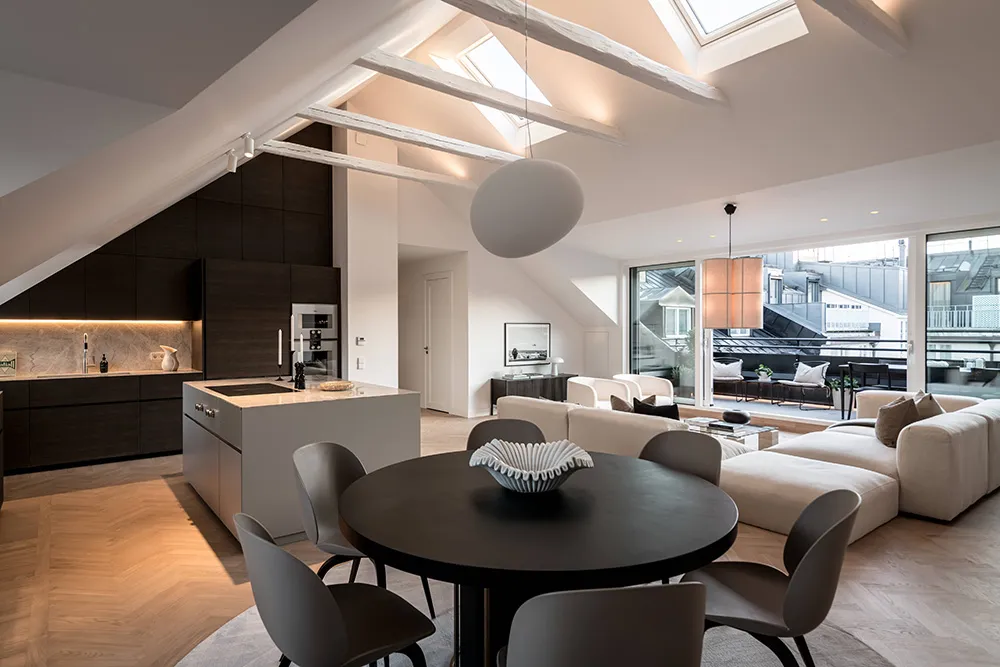 Ścisły minimalizm efektnego atticu w Stokholmie