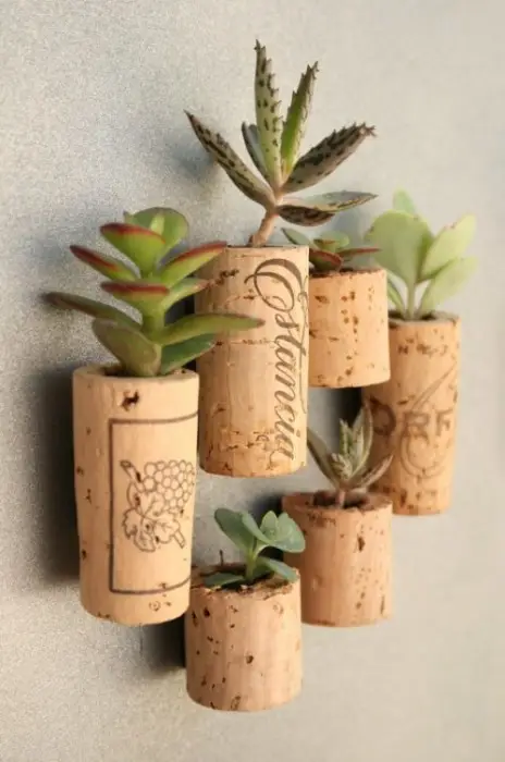 Как можно украсить кухню так, чтобы с изюминкой и не занимало много места? Очень просто. Наверняка вы уже неоднократно придумывали, как использовать корковые пробки, вот еще одна свежая мысль. Создайте свой маленький минисадик на холодильнике. Все что вам понадобиться наличие самих пробок, магнитов и несколько ростков ваших любимых цветов. Приступим.