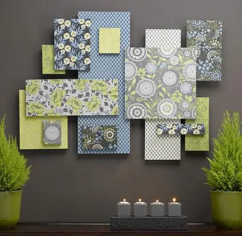Нарежьте картон разного размера и формы, наклейте на него обои и скомпонуйте, отталкиваясь от того где разметите свое творение. Вы много потратили времени?